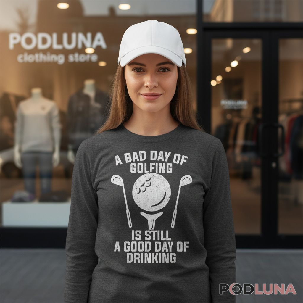 Triple bogeys, lost balls in the water, drives that slice into neighboring fairways—the scorecard suggests going home, but the nineteenth hole beckons with cold beverages and the understanding that golf was really just an excuse to drink with friends anyway. This funny golf shirt captures that perspective with smiling golf ball imagery and honest messaging about priorities. Designed for golfers who appreciate humor about their struggles or gift shoppers seeking relatable golf dad presents, Podluna’s A Bad Day Of Golfing Dad Is Still A Good Day Of Drinking Shirt delivers comedic recognition of golf’s real purpose. The happy golf ball adds visual charm while the message resonates with anyone who’s ever had a terrible round but still enjoyed the day. Golfers wear this to clubhouses where bad rounds are frequent topics of conversation, casual outings where the shirt sets expectations appropriately, or anywhere advertising the truth that scorecard numbers matter less than the company and beverages that make any golf day good regardless of performance.