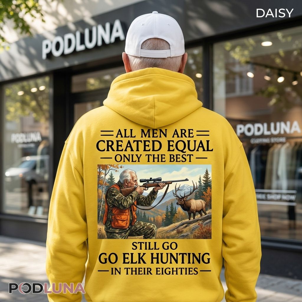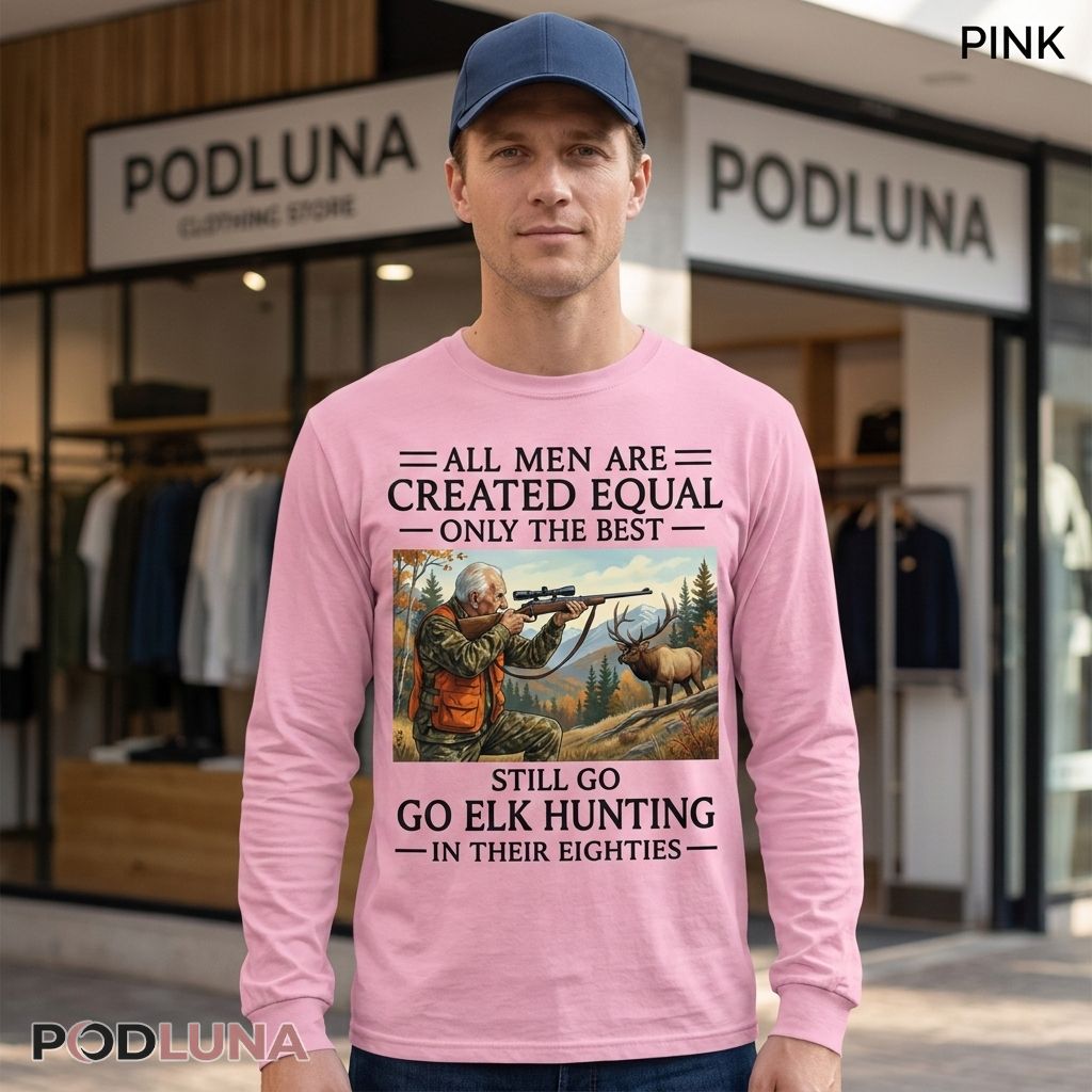 While other men retire to recliners, the best hunting dads prove that decades of experience, mountain wisdom, and unwavering passion for elk hunting matter more than birth certificates when season opens and the mountains call. This hunting dad shirt celebrates that dedication with detailed elk hunting scene and messaging honoring fathers who maintain their outdoor traditions regardless of age. Designed for hunting fathers who refuse to let age stop them or families gifting dads who still pursue elk with the same intensity they had in their youth, Podluna’s All Men Are Created Equal Only The Best Still Go Elk Hunting In Their Eighties Shirt delivers powerful recognition of lifelong hunting commitment. The detailed hunting illustration captures the skill and focus required for elk hunting while the message separates casual hunters from dedicated outdoorsmen who understand hunting is a lifetime pursuit. Hunting dads wear this proudly during elk season advertising their continued participation, family gatherings where it explains why grandpa’s still heading to the mountains, or anywhere honoring fathers whose hunting passion defines them more than any age ever could.