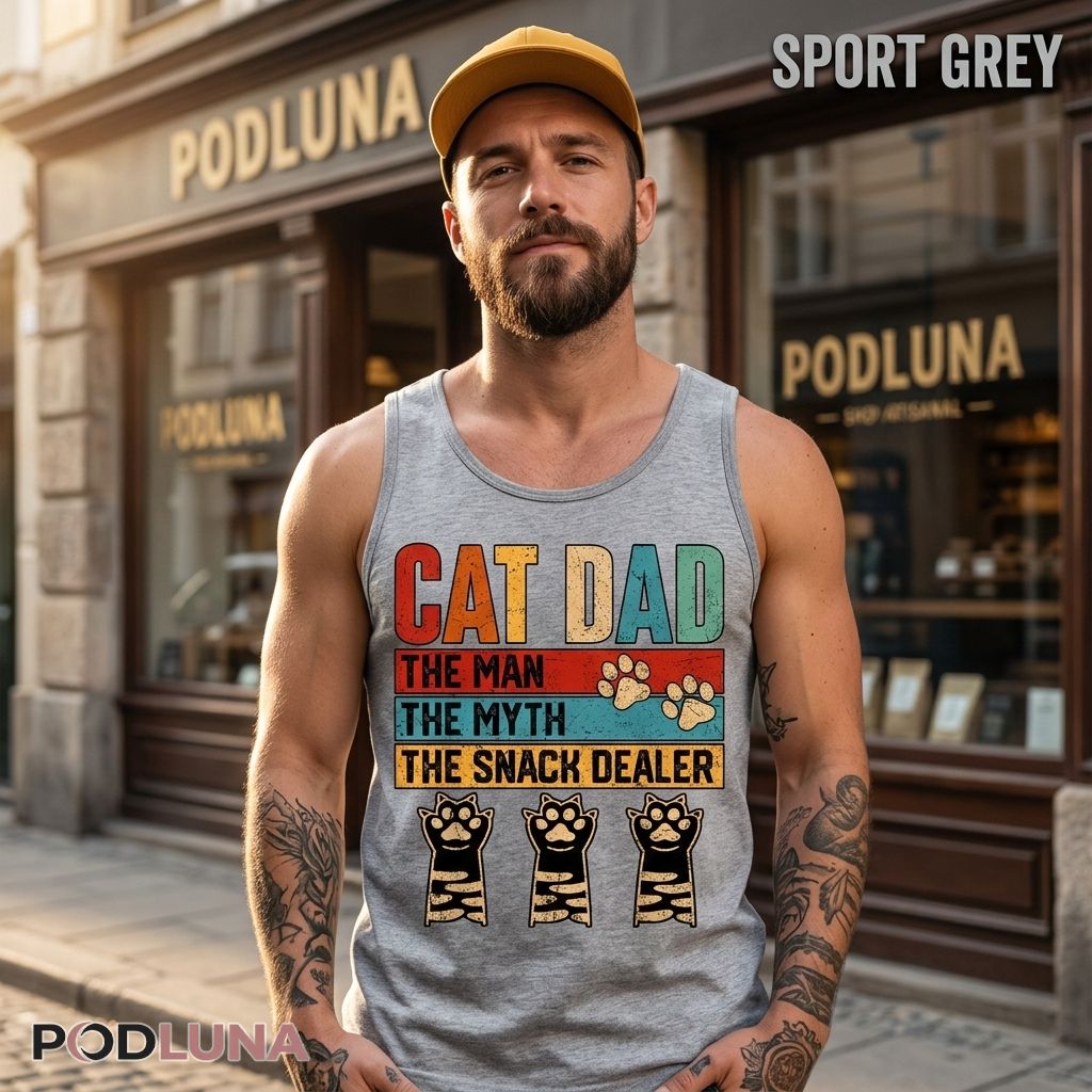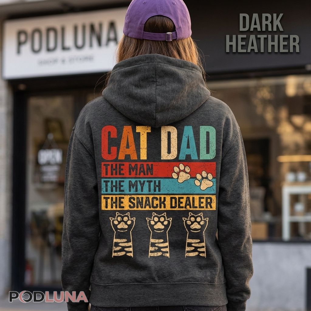 For the cat dad whose cats could not care less about him until the moment he walks anywhere near the treat drawer — who has become the most important person in the household not through personality or charm but through consistent, reliable snack distribution — this shirt accurately documents his actual role in the family ecosystem. The man, the myth, the snack dealer: the three titles every cat dad has truly earned. Podluna nailed the specific dynamic of every cat household where the human thinks he runs things right up until the treats run out. The perfect cat dad gift for Father’s Day, his birthday, or any occasion where the right present comes with a laugh from everyone who has watched his cats completely ignore him until he shakes that bag. Wear it anywhere fellow cat owners will immediately recognize the job description.