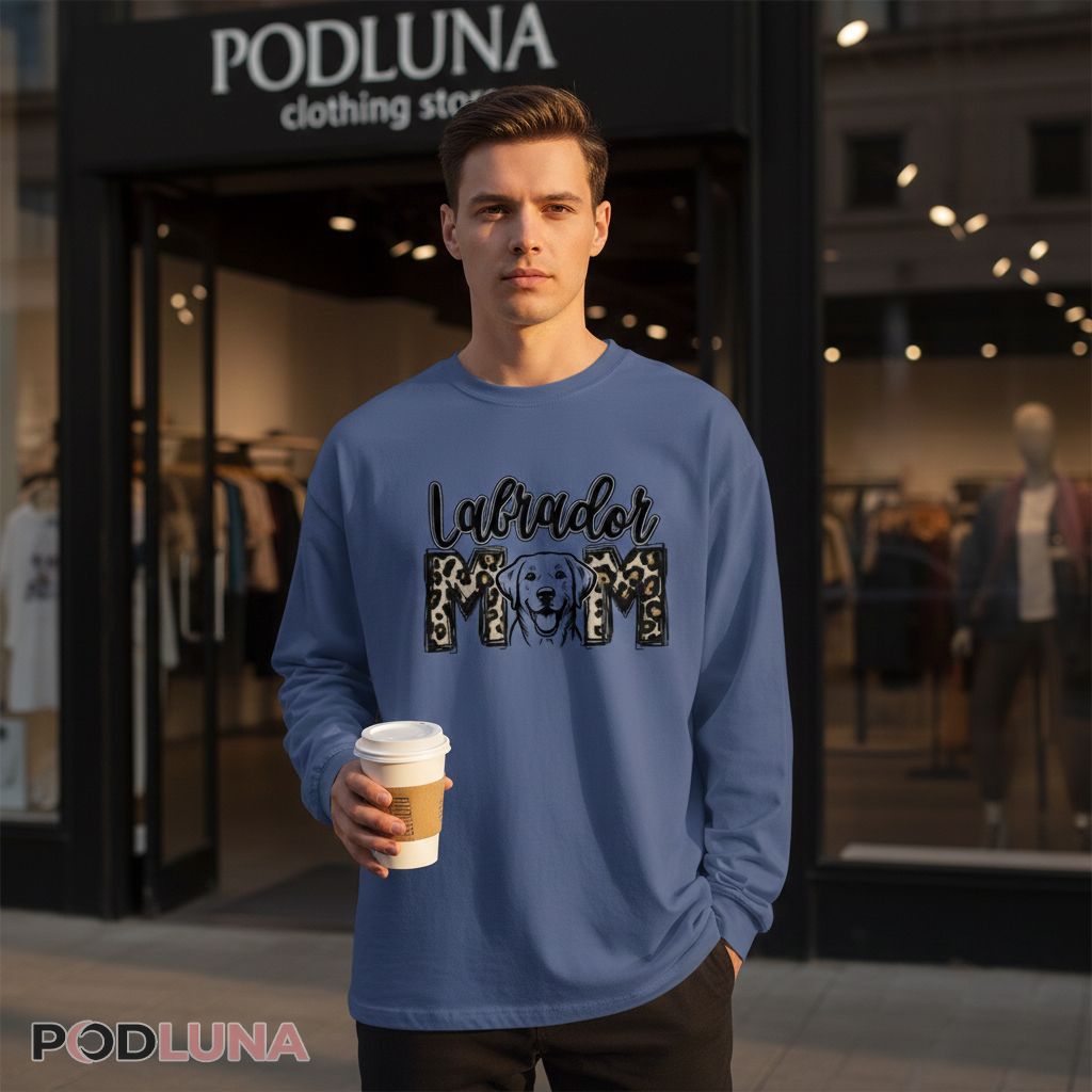 Labrador mothers know these eternally optimistic retrievers who greet every moment with tail-wagging enthusiasm, whether it’s mealtime, walk time, or simply existing in the same room together. These food-motivated, water-loving companions transform households into adventure zones filled with muddy paw prints, stolen socks, and unconditional affection that forgives all inconveniences. The Labrador mom shirt with its fashionable leopard print accents appeals to women who want pet-themed apparel that feels current rather than overly cutesy. Great for running errands with dogs in tow, meeting fellow Lab owners at training classes, or casual social gatherings where conversation inevitably turns to the lovable chaos Labradors bring to family life through their boundless energy and gentle hearts.