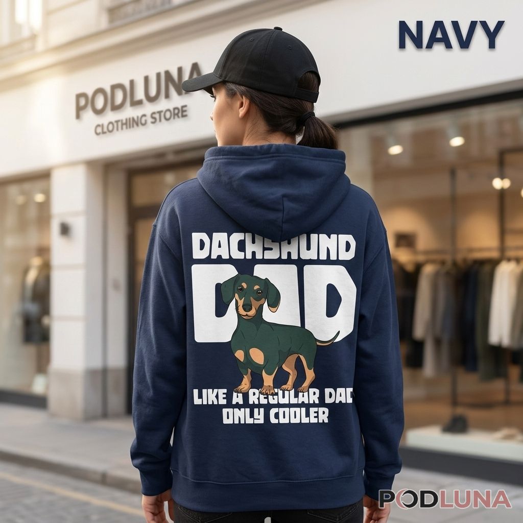 This Dachshund Dad shirt is a funny dachshund dad t-shirt designed for proud wiener dog owners who know their breed comes with its own category of devotion, stubbornness, and impossible charm. For the dachshund dad who has reorganized his entire furniture layout around a dog with four-inch legs — who has carried that dog up stairs, down stairs, on and off the couch, and absolutely everywhere in between — the cooler-than-regular-dad distinction is not a boast, it is a documented fact confirmed by everyone who has watched him operate. No standard dog dad gift covers this specific experience. Podluna designed this funny dachshund dad t-shirt for the wiener dog lover whose daily life is shaped entirely by one very long, very low, very opinionated animal. Gift it for Father’s Day, his birthday, or any occasion where the dachshund dad in your life deserves to be recognized for the very specific excellence his breed demands.