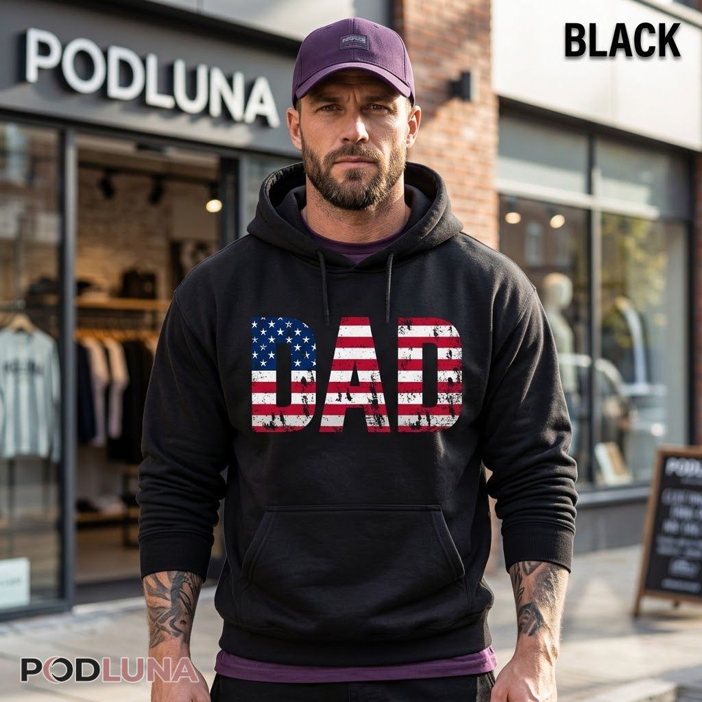 This patriotic dad shirt is exactly right for Fourth of July cookouts, Father’s Day celebrations that happen to fall near summer, neighborhood block parties, and every outdoor gathering where someone needs to be unofficially in charge of the burgers. It wears clean with shorts and sneakers and carries that quiet authority that only dads seem to pull off naturally.