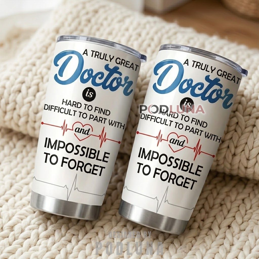 The three-part structure of the message on this tumbler is what makes it work so well. Each line builds on the previous one, moving from scarcity to value to permanence in exactly the right order. A truly great doctor being hard to find is a professional observation. Being impossible to forget is a personal one. And the heartbeat line connecting the two is the design doing what good design does, making the connection visible without explaining it. Podluna built this doctor appreciation tumbler for the patient, the family member, or the colleague who finally found the right words to describe what this physician means to them.