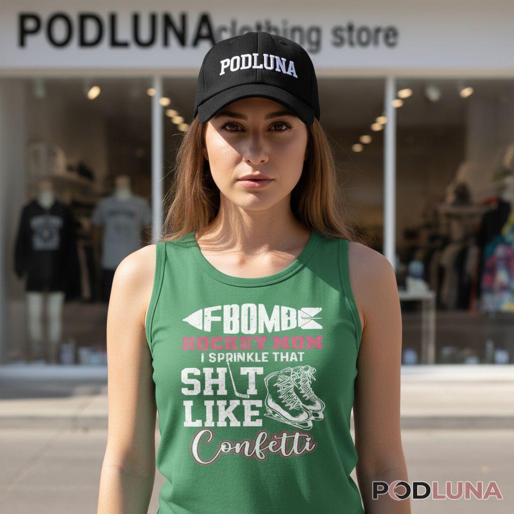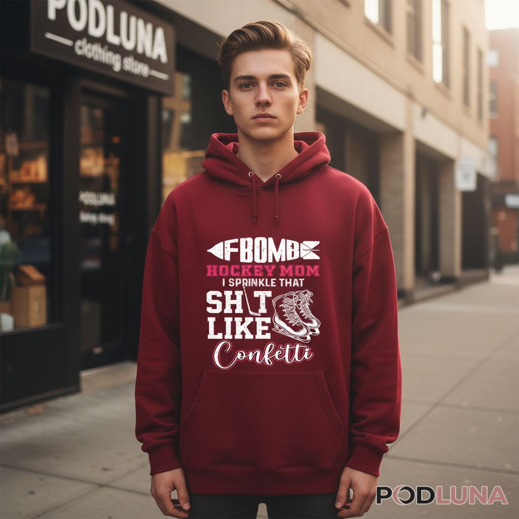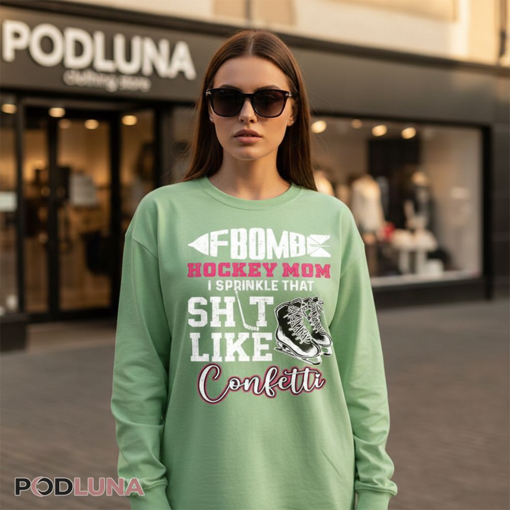 Hockey brings out passion in parents—and sometimes that passion expresses itself in language that wouldn’t fly at book club but feels perfectly appropriate when your kid gets cross-checked into the boards. For women whose children play hockey and who’ve learned that rink-side commentary occasionally requires strong vocabulary, this design celebrates that reality with zero apologies. Podluna’s FBomb Hockey Mom I Sprinkle That Sh Like Confetti Shirt embraces the unfiltered honesty of hockey parent culture. Perfect for mothers attending their children’s hockey games where refs make questionable calls, tournament weekends when emotions run high, or team gatherings with fellow hockey parents who understand. The hockey skate graphic keeps it sport-specific while the confetti comparison adds humorous contrast. Great gift for hockey moms with a sense of humor about their rink-side personality, ideal for team mom appreciation or birthday presents for women who’ve accepted that hockey brings out their most colorful language.