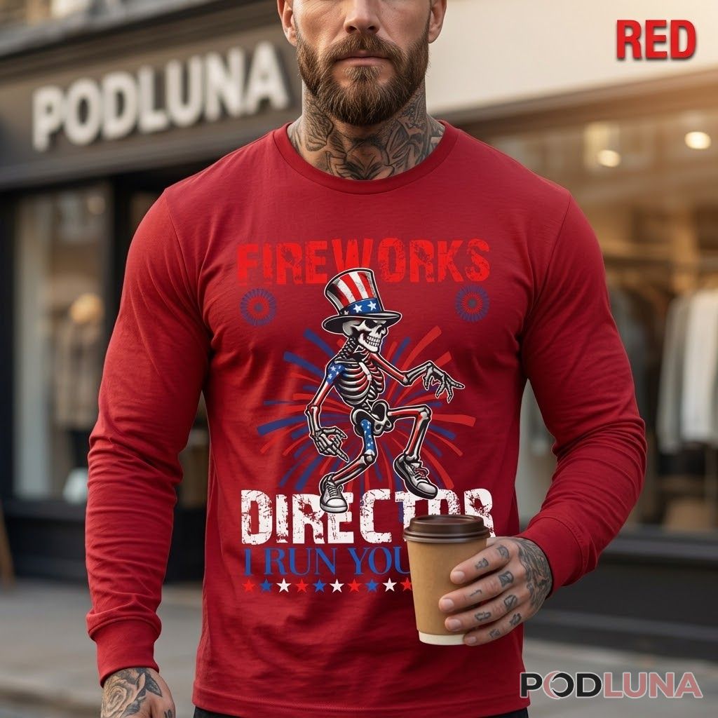This Fireworks Director shirt belongs at every backyard cookout, lake celebration, neighborhood block party, and Fourth of July gathering where someone reliably takes charge of the fireworks display with more confidence than safety training. It pairs with shorts, a lawn chair nearby for authority, and the complete willingness to issue evacuation orders at a moment’s notice. The job comes with the shirt.