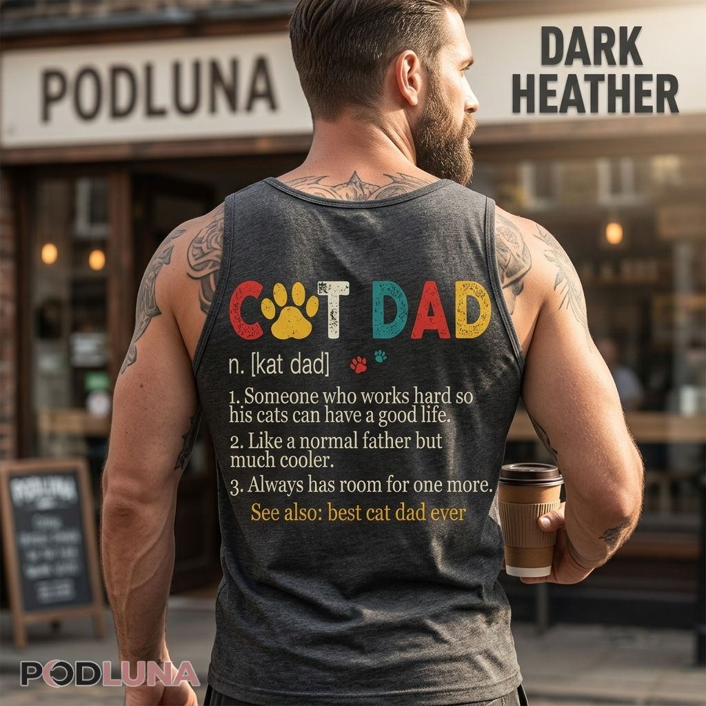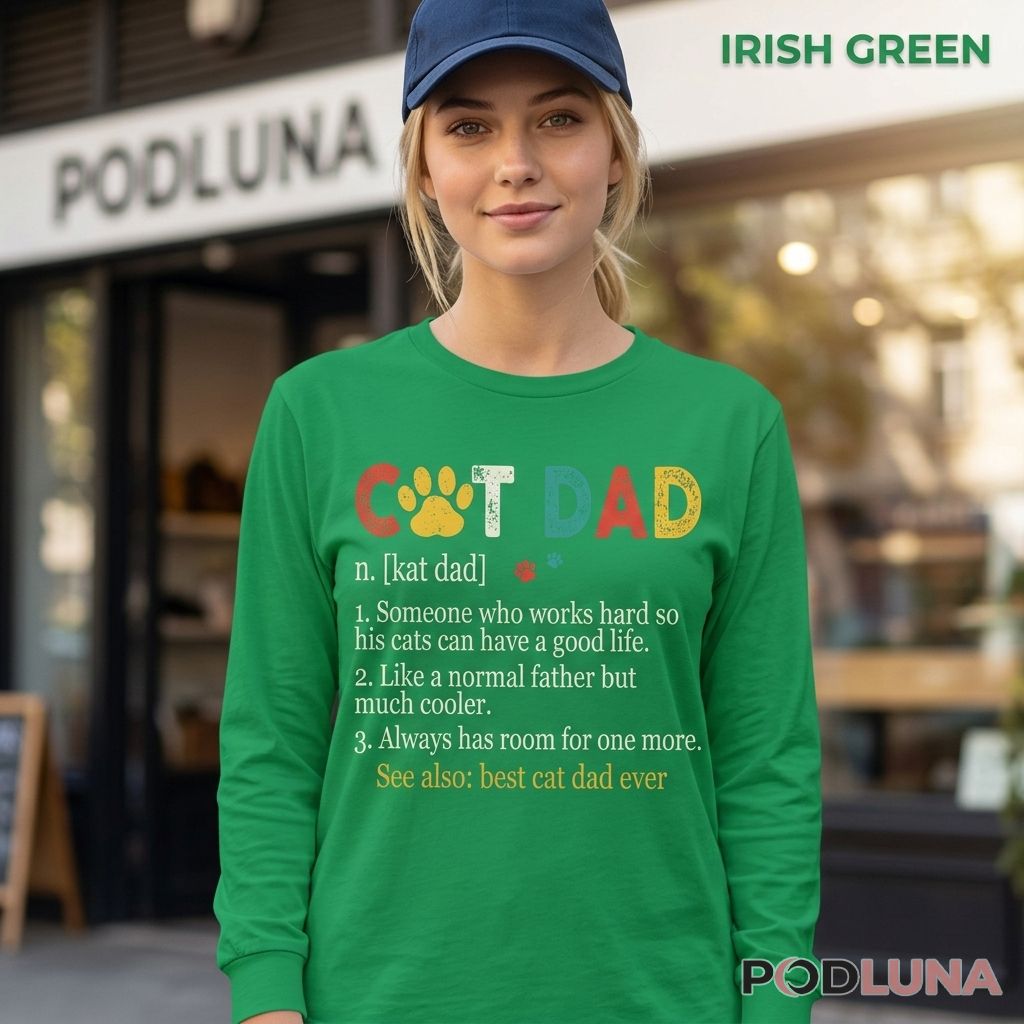 For the person shopping for someone who has reorganized his entire life around his cats’ comfort schedule, who has never once turned away a cat in need because point three is simply who he is, and who would describe himself as a normal father if pressed but secretly knows the cooler distinction applies — this shirt reads like his actual biography. Every cat dad who sees it will recognize at least two of the three definitions as personally, specifically accurate. Podluna turned the dictionary format into the most relatable cat dad gift available, one that earns a laugh the moment it is read and a nod every time after that. The perfect funny cat dad gift for Father’s Day, his birthday, or any occasion where the best present proves that whoever chose it truly understands the job. Wear it anywhere fellow cat lovers will stop to read the full definition and immediately agree with every entry.