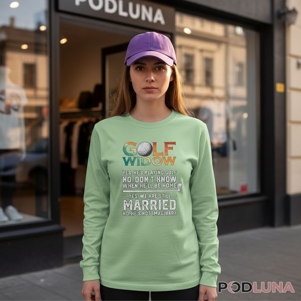 Every weekend the same routine—he’s gone before dawn, home after dark, and you’re fielding questions about whether he actually exists or if you invented a golfing husband to explain the empty seat at family dinners. This golf widow shirt captures that reality with FAQ formatting and humor that resonates with every woman who’s mastered solo weekends while her husband chases pars. Perfect for wives shopping for funny golf dad gifts they can wear themselves or women who want shirts that tell their truth, Podluna’s Funny Golfing Wife Quote Golf Widow Still Married Gifts For Golf Dads Shirt delivers laugh-out-loud recognition of golf widow life. The Q&A format anticipates strangers’ questions while the colorful lettering adds visual appeal beyond the joke. Golf widows wear this to family events where relatives ask the predictable questions, allowing the shirt to answer while they smile knowingly, or gift it to fellow golf widows who understand that marriage to golfers means accepting that Saturdays belong to the course, not the couch.