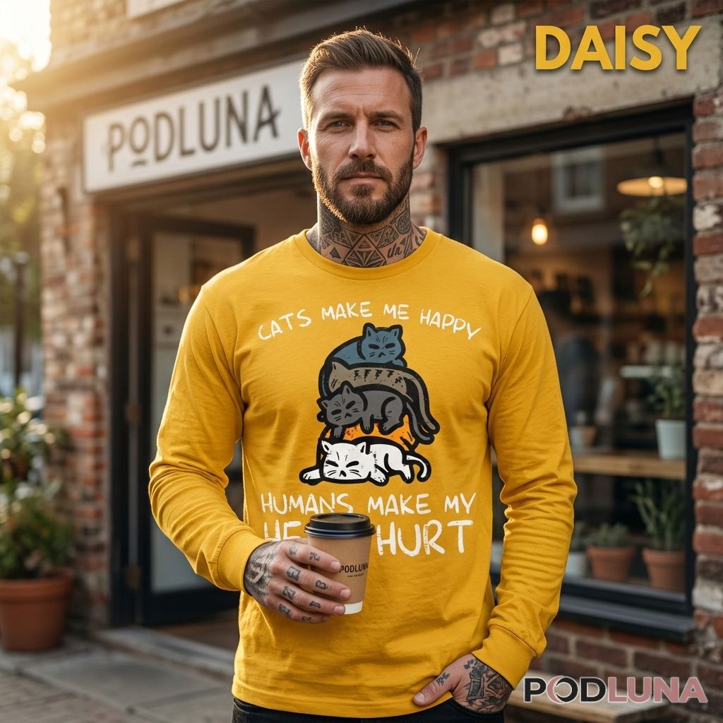 For the person whose idea of a perfect evening involves zero humans, maximum cats, and absolutely no obligation to make small talk with anyone — who has left social events early specifically to get back to his cats and felt zero regret about that decision — this shirt is his public service announcement and his social policy printed in one place. Cats make him happy. Humans are complicated. His cats already knew this about him and chose him anyway. Podluna designed this one for the introverted cat dad whose cats are not just pets but genuinely preferred company, and whose close circle will find this shirt painfully, lovingly accurate. The perfect funny introvert cat dad gift for Father’s Day, his birthday, or any occasion where the right present requires zero explanation from the person receiving it. Wear it everywhere — especially around humans.