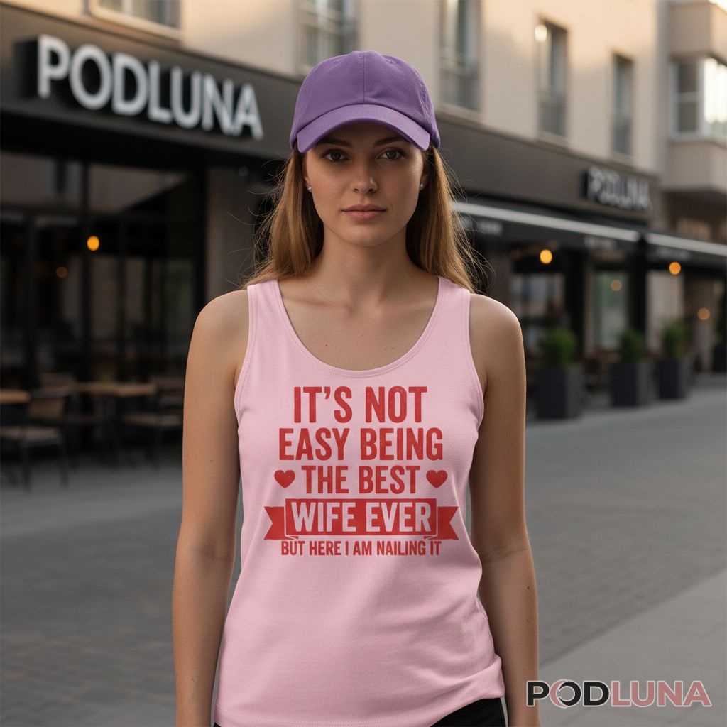 Your husband married well and you know it. The Funny Its Not Easy Being The Best Wife Ever Nailing It Shirt from Podluna lets you wear that truth with humor—grab yours today.