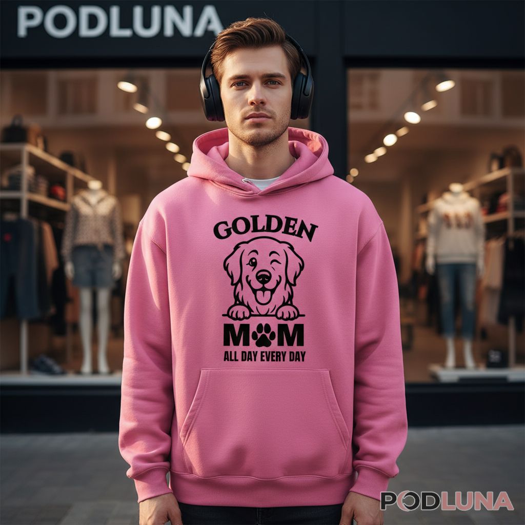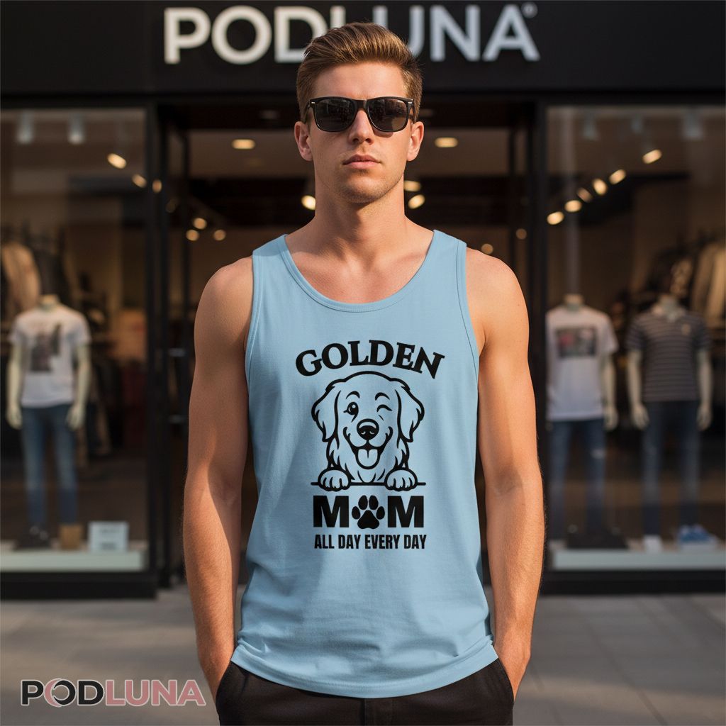 Golden Retriever ownership means accepting that privacy becomes obsolete, bathroom breaks include audience members, and every activity—from cooking to sleeping—involves canine supervision with unwavering dedication. These velcro dogs shadow their mothers relentlessly, offering emotional support during mundane tasks while demanding participation in their own agenda of meal times, walks, and play sessions. The all day every day Golden mom shirt speaks truthfully about the round-the-clock commitment these social butterflies require, resonating with owners who’ve surrendered to their role as permanent entertainment directors, ideal for veterinary appointments where Goldens charm staff, neighborhood walks where they greet every passerby, or lazy Sundays spent with persistent companions who refuse to understand personal space.