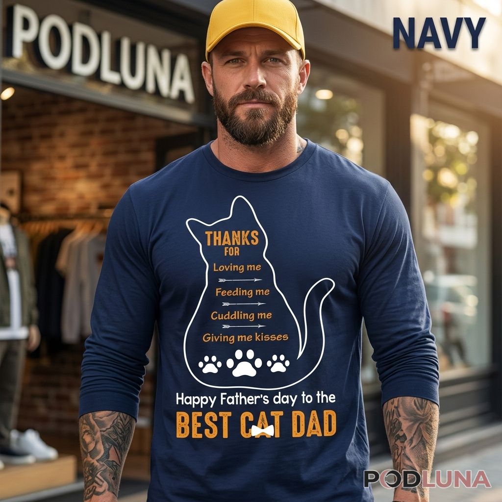 For the cat dad who has given everything to his cats without ever expecting a word of thanks — who shows up every single morning for the feeding, the brushing, the lap time, and the forehead kisses — this shirt is the acknowledgment his cat would absolutely write if it had hands and slightly more interest in expressing gratitude. Every item on that list is true, documented, and witnessed by everyone in the household. Podluna created this Father’s Day cat dad shirt as the gift that bridges the gap between what cats feel and what they are willing to admit out loud. The most on-the-nose Father’s Day gift for the cat dad in your life — order it in time and let the shirt say everything his cats have been meaning to tell him all along.