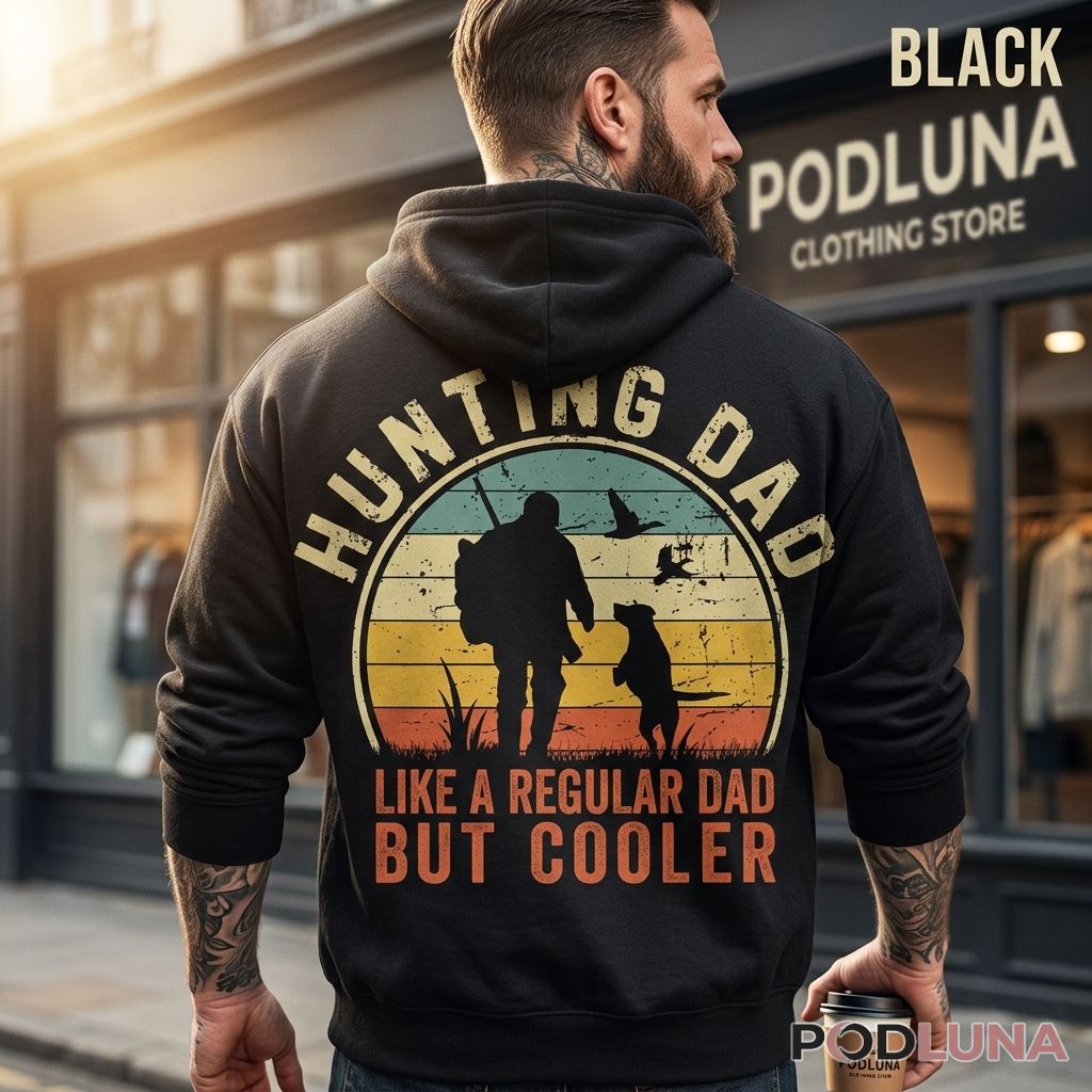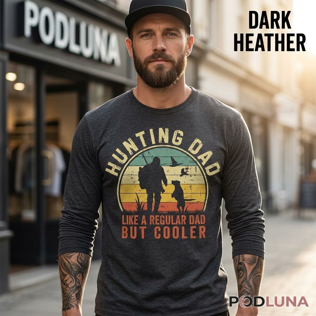 For the kids who already know their dad is not like other dads — he wakes up before sunrise, he knows every trail, he has a dog that listens better than most people, and he makes every hunting season feel like an adventure — this shirt says it plainly: hunting dad, like a regular dad but cooler. Designed by Podluna, a gift-focused brand specializing in meaningful apparel for dads and outdoor families, this retro hunting dad shirt is the kind of gift that comes straight from the heart of every kid who has ever followed their dad into the field. The perfect funny hunting gift for dad on Father’s Day, his birthday, or any occasion where the best present is one that makes him laugh, nod, and immediately show it to his hunting buddies. Wear it to hunting camp, the sporting goods store, or any place where fellow outdoorsmen will immediately agree — hunting dads really are just built different.