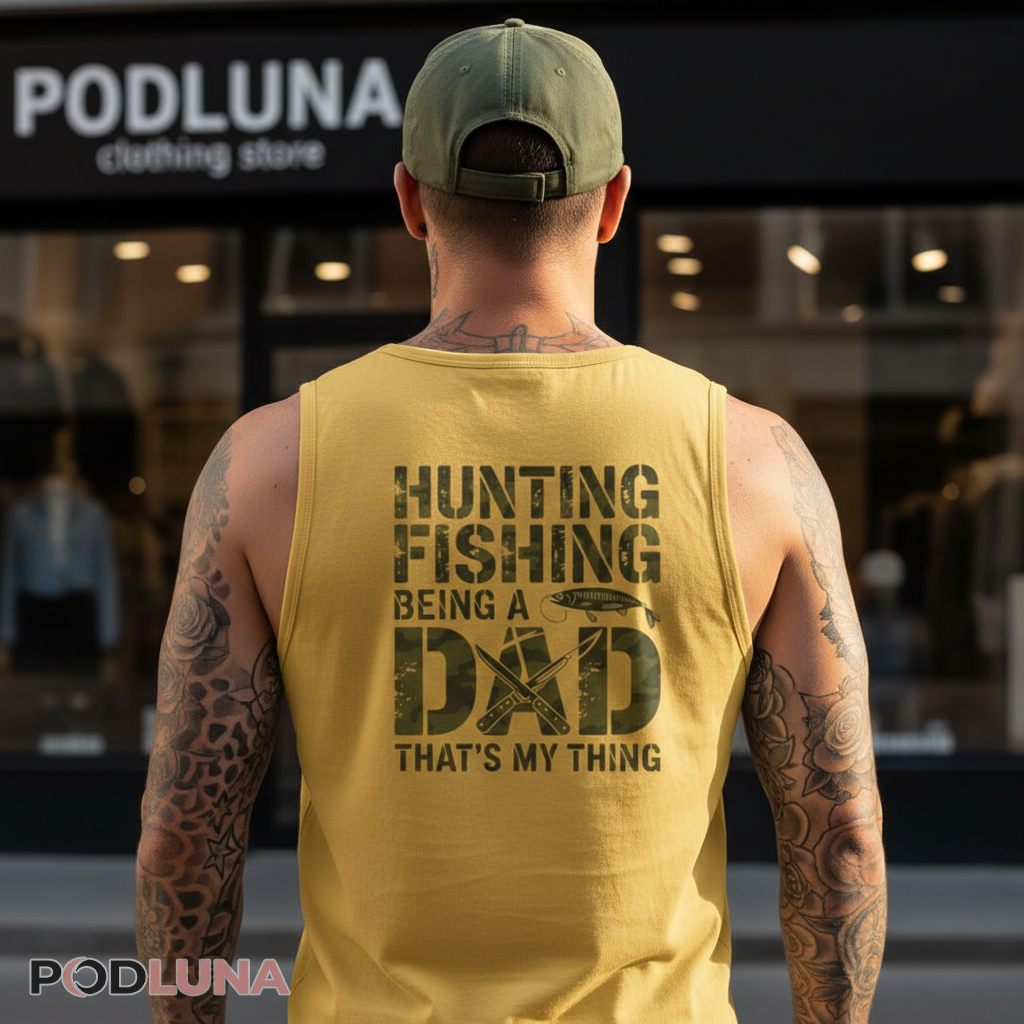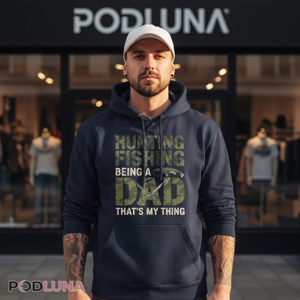 Podluna’s Hunting Fishing Being A Dad That’s My Thing Shirt validates the sportsman father lifestyle without pretense. The camouflage typography isn’t decorative—it’s identity, representing fathers who’ve seamlessly blended outdoor pursuits with raising families. Hunting and fishing dads wear this to parent-teacher conferences where it explains why vacation requests align with deer season, weekend sporting goods store trips where fellow outdoorsmen nod in recognition, Father’s Day gatherings where kids gifted it knowing these three things define their dad completely, or family photos where the shirt documents exactly who this father is. The design resonates with sportsmen raising the next generation of hunters and anglers, fathers whose legacy involves passing down outdoor skills and conservation ethics, and dads who’ve discovered that teaching children to field dress game or read fishing waters creates bonds stronger than any conventional parenting approach—because for these fathers, hunting, fishing, and fatherhood aren’t separate life components but interconnected expressions of the same core identity that defines everything about how they choose to live and raise their families.