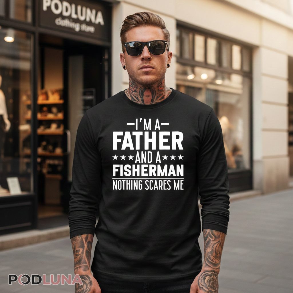 What these dads have proven through experience is simple—successfully managing both roles simultaneously builds courage facing anything life throws their way. The bold typography from Podluna reflects the straightforward mindset of fathers who’ve learned that children’s unpredictability and fishing’s uncertainties create problem-solving skills applicable everywhere. Fearless fishing fathers display this during weekend angling trips where other dads recognize the earned confidence, casual wear that broadcasts their unshakeable identity, Father’s Day celebrations where family acknowledges dad’s strength through both roles, or everyday situations where challenges arise and this shirt reminds everyone watching that men who parent well and fish seriously have already conquered tougher obstacles. The design resonates with devoted dads balancing family responsibilities with fishing passion, anglers whose parenting journey taught them resilience that translates to every aspect of life, and fathers who wear both titles as badges of honor proving they’ve faced enough challenges between raising kids and pursuing fish that very little remains capable of intimidating them anymore.