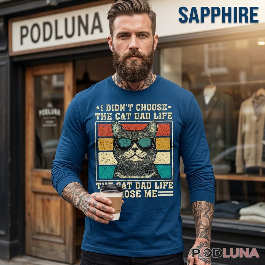 For the cat dad who can point to the exact moment a cat showed up — at his door, at the shelter, in someone’s arms being offered to him — and made a choice that he technically had no say in, this shirt documents the origin story of every cat dad who has ever lived. He did not choose the cat dad life. The cat dad life, in the form of one very specific animal with very clear intentions, simply chose him and the matter was settled. Podluna turned that universal cat dad origin story into a retro design that resonates with anyone who has been claimed by a cat and found themselves completely fine with it. Hand it to the newly inducted cat dad still figuring out how this happened, or the veteran cat dad who has been chosen multiple times and has stopped asking questions. Either way, the shirt already knows his story.