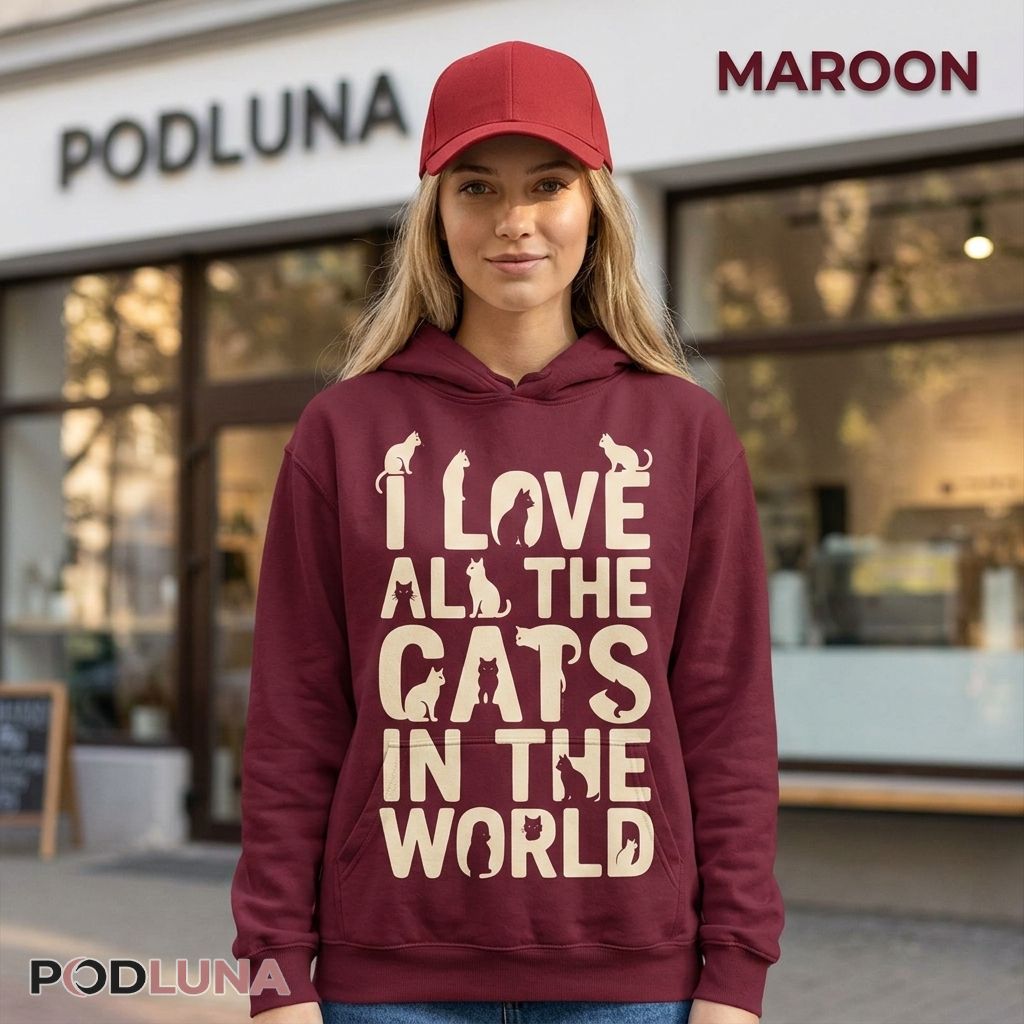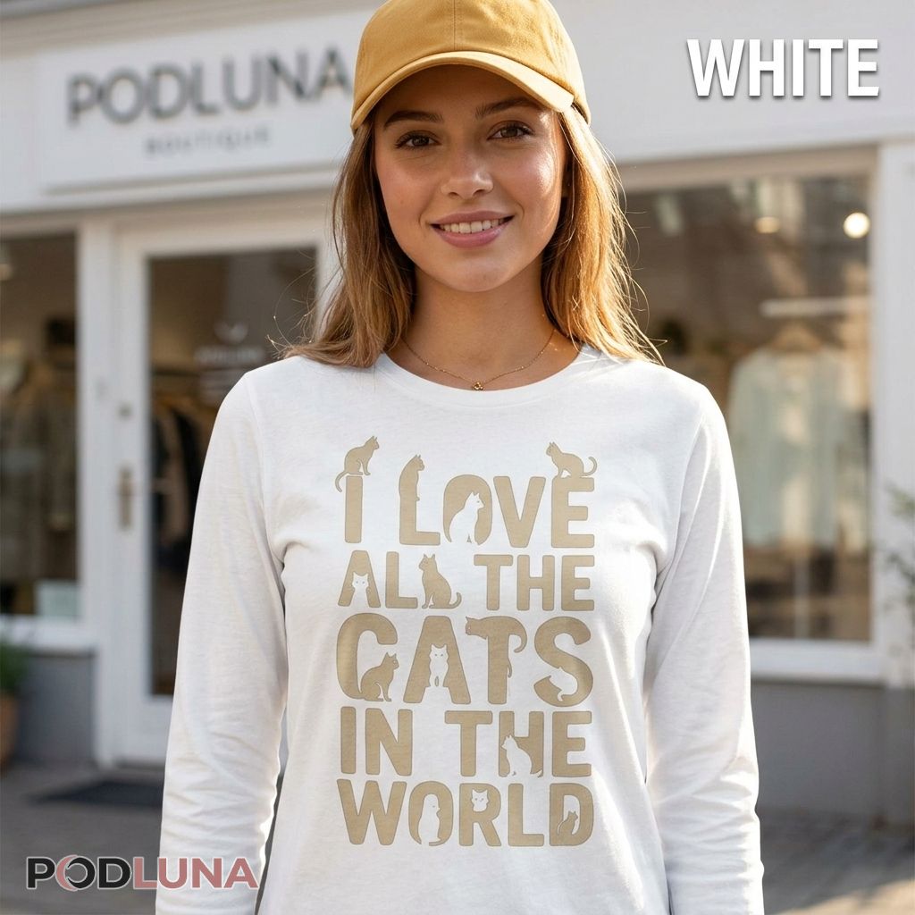 For the cat lover whose affection does not discriminate by breed, size, temperament, or whether the cat in question has any interest in being loved back — who stops for every cat on the street, follows every cat rescue account, and whose heart genuinely expands to accommodate every single feline it encounters — this shirt is the most accurate statement of values they own. All the cats. In the world. Full stop. Podluna built this design for the cat lover whose capacity for feline affection has no upper limit and no geographic boundary, and whose friends and family have witnessed enough evidence to know this statement is completely sincere. A gift that works for any occasion, any cat lover, any season — because the declaration on the back is timeless and universally true for the right person.