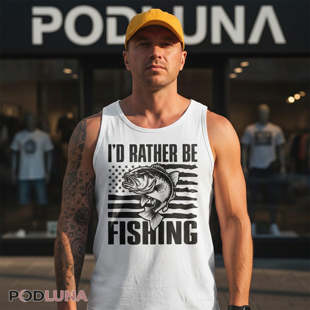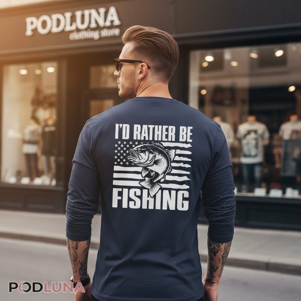 Sneaking out before dawn while the family sleeps to catch the morning bite, cutting work meetings short when conditions are perfect, and teaching kids that some priorities—like quality time with a rod on tournament-worthy bass waters—matter more than society’s expectations. Fishing dads live by a code where family comes first, but a close second is the lake calling their name. This shirt speaks that truth without apology, designed for fathers who’ve built their identity around bass fishing and see no reason to pretend otherwise. Podluna’s I’d Rather Be Fishing Bass American Flag Shirt gives fishing fathers permission to wear their priorities proudly, combining patriotic imagery with the singular focus that defines devoted angler dads. The leaping bass and flowing stars-and-stripes create a visual language fathers recognize instantly—American bass fishing heritage that they’re actively preserving by introducing their own children to the sport. Bass fishing dads wear this to Father’s Day cookouts where everyone already knows where he’d rather be, weekend tournaments where the shirt becomes a conversation piece among fellow fishing fathers, casual family outings where kids point to dad’s shirt and laugh because they know it’s absolutely true, or any setting where a father wants the world to understand that his greatest joy isn’t found in boardrooms or shopping malls but in pursuing American largemouth bass—and that honest declaration is what makes him exactly the dad his family needs.