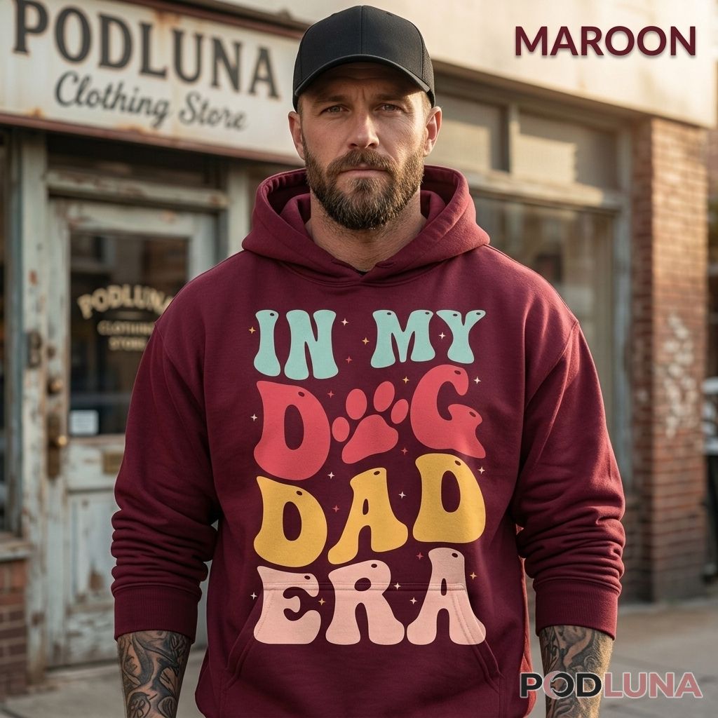This in my dog dad era shirt is a retro groovy dog dad shirt and funny dog dad t-shirt designed for proud dog lovers who have fully stepped into their dog dad identity and are announcing it with the confidence it deserves. For the dog dad who has crossed the point of no return — whose calendar, couch space, and emotional bandwidth are now organized entirely around his dog — this dog dad gift names the current chapter of his life with the same energy he brings to every walk, every treat, and every completely unnecessary but absolutely essential dog purchase. The groovy retro aesthetic makes it as visually distinctive as the person wearing it. Podluna designed this dog dad era t-shirt as the gift that works for any dog lover ready to declare their era officially open — Father’s Day, a birthday, or simply the right moment to hand someone a shirt that describes exactly where they are in life right now.