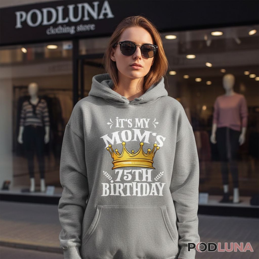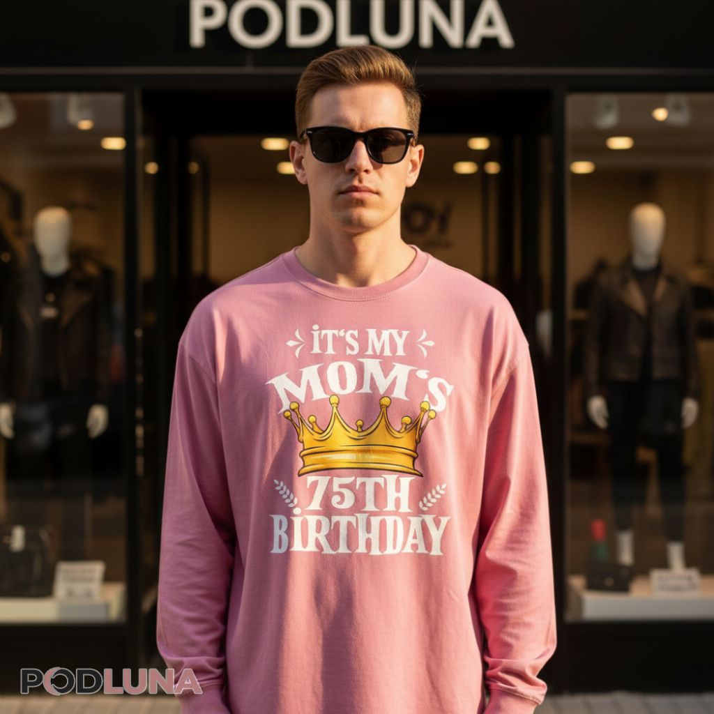 Seventy-five years of wisdom, strength, and unconditional love deserve more than just a card—they deserve a celebration that shows the world how much this milestone means. This mom birthday shirt captures that sentiment with a golden crown representing the queen status earned through decades of motherhood. Perfect for family members attending mom’s 75th birthday party or children who want matching shirts for the celebration, Podluna’s It Is My Moms 75th Birthday Present Shirt delivers heartfelt recognition of this remarkable achievement. This birthday party shirt works perfectly for milestone celebrations, family gatherings, photo sessions, or anywhere honoring a mother who’s reached this special age. Makes a meaningful 75th birthday gift from children organizing the party, coordinated present for all family members to wear, or any occasion celebrating mothers who’ve given three-quarters of a century of love and deserve royal treatment on their special day.