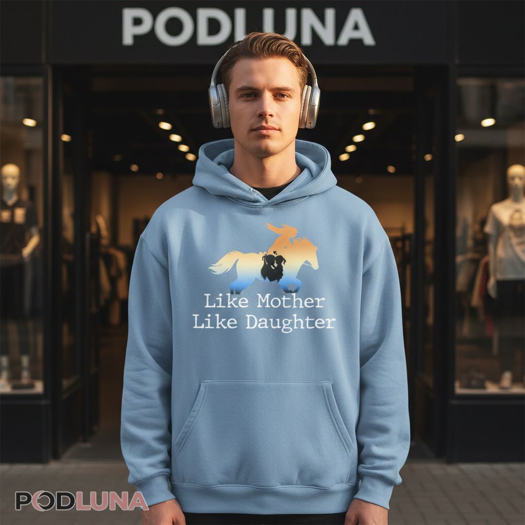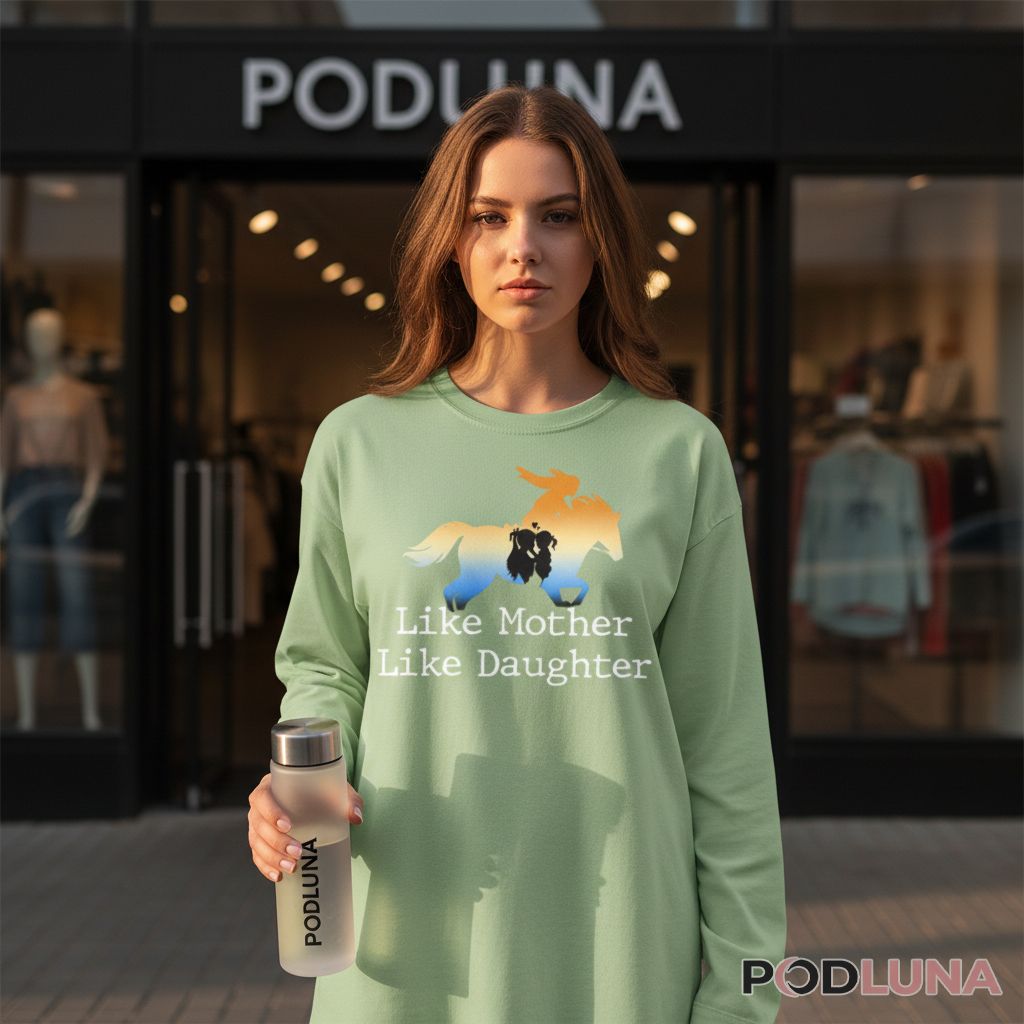 Some mothers pass down jewelry or recipes, but equestrian mothers pass down something far more valuable—a love of horses that shapes who their daughters become. This design captures that intergenerational bond through simple but powerful imagery. Podluna’s Like Mother Like Daughter Horse Riding Sunset Shirt is perfect for mother-daughter pairs who share riding as their connection, gifts from daughters to horse-loving moms, or casual wear celebrating the special relationship between equestrian mothers and the daughters following in their footsteps. The sunset gradient adds warmth and beauty while the central figure represents the daughter inheriting this passion. Wear it to barn days, horse shows, or family gatherings where the equestrian legacy runs deep—because like mother, like daughter isn’t just a phrase, it’s a way of life built on shared love for these incredible animals.