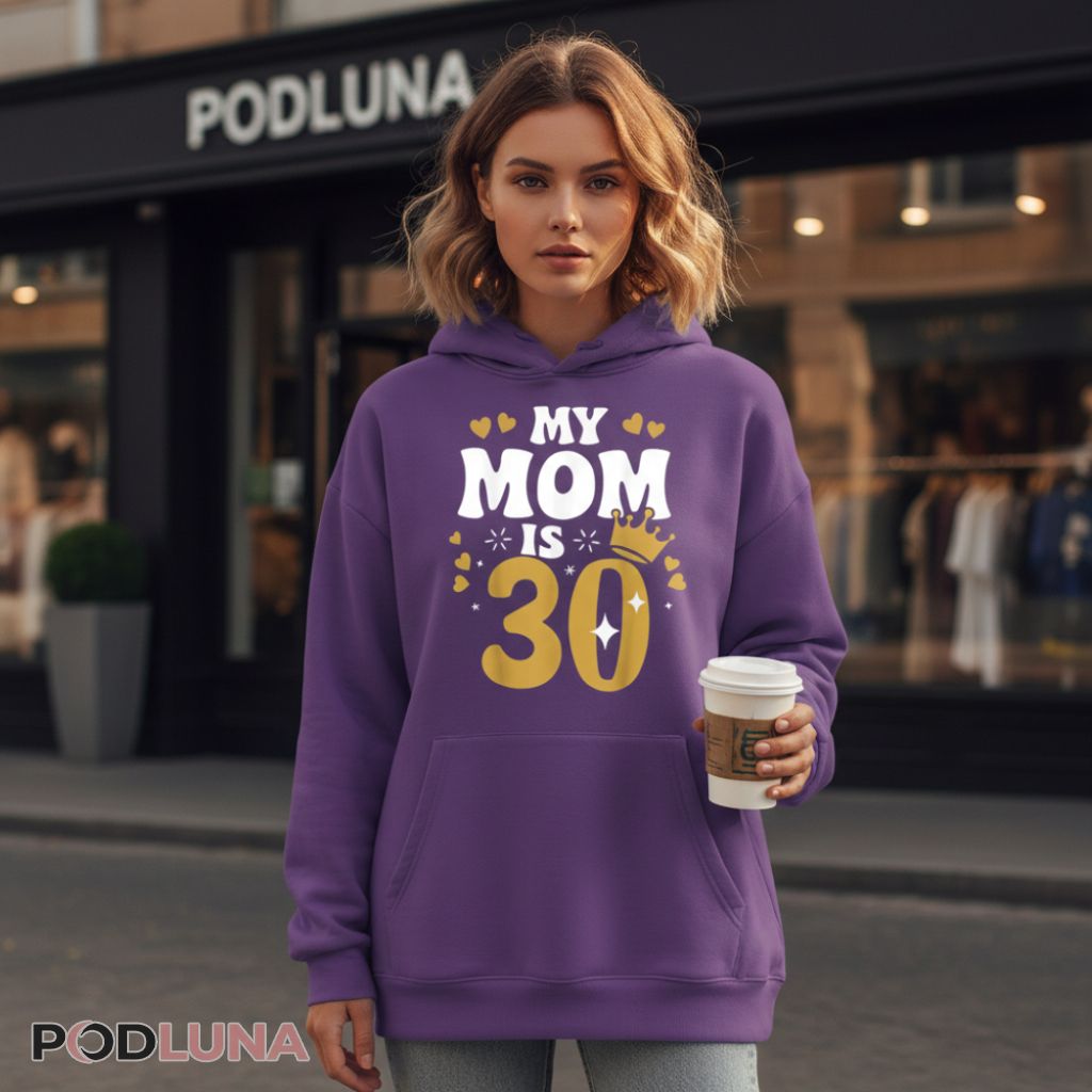Thirty is a big deal—it’s the birthday that officially closes the “twenty-something” chapter and opens a new decade full of confidence, clarity, and maybe a few gray hairs (though we’re not mentioning those). This design gives mom’s 30th the royal celebration it deserves with bold numbers, a crown, and plenty of sparkle. Podluna’s Mom 30th Birthday Matching Family Party Tee is perfect for children attending their mother’s milestone celebration, coordinated family outfits that make the party photos memorable, or as a gift that captures the excitement of this specific age. The gold crown on the zero adds that “queen of her thirties” energy while the hearts remind everyone this celebration is rooted in love. Wear it proudly to birthday parties, milestone dinners, or anywhere mom’s new decade deserves to be announced.