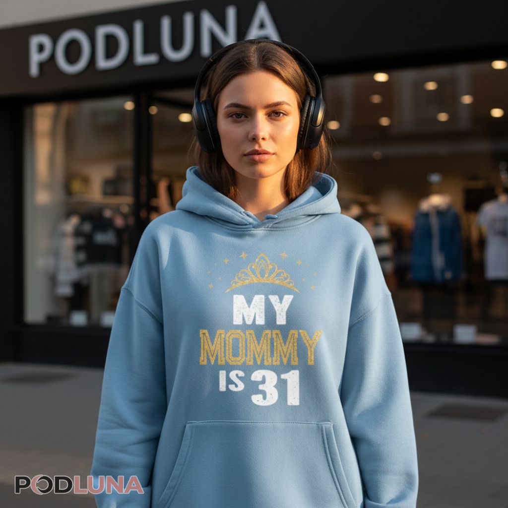 Thirty-one may be just past the big 3-0, but it’s still worth celebrating—especially when mom’s juggling motherhood, career, and everything else life throws at her. This design gives her 31st the royal treatment with an elegant tiara and sparkling accents that make the day feel special. Podluna’s My Mommy Is 31 Sparkling Birthday Celebration Shirt is perfect for young children celebrating their mother’s birthday, coordinated family outfits for the party, or as a gift that reminds mom she deserves to feel like royalty at any age. The gold and white color scheme adds celebratory elegance while the affectionate “Mommy” keeps it personal and sweet. Wear it to birthday brunches, family gatherings, or casual celebrations where mom gets her moment to shine.