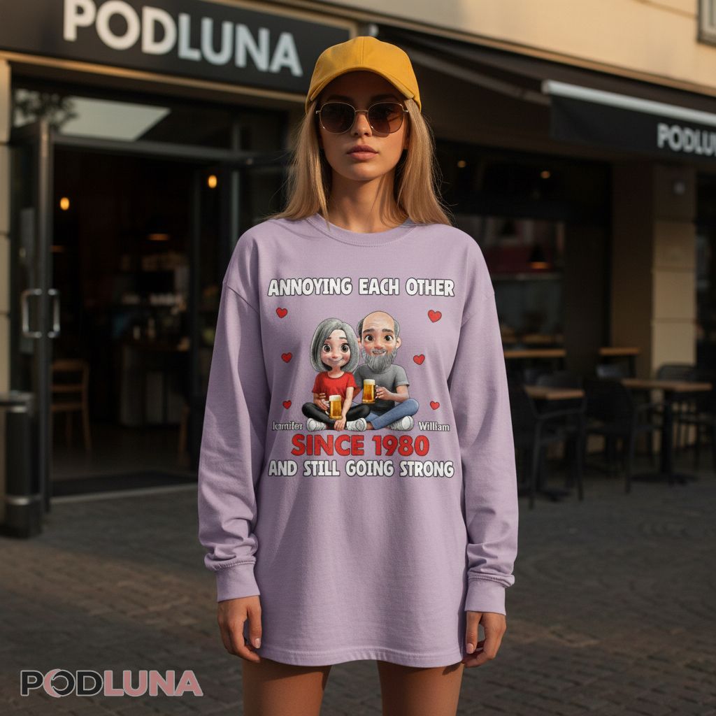 Ready to wear your relationship humor proudly? Order this Personalized Anniversary Annoying Each Other Since 1980 Shirt from Podluna today and turn it into a meaningful gift that celebrates how love gets better (and funnier) with time! Add to cart now!