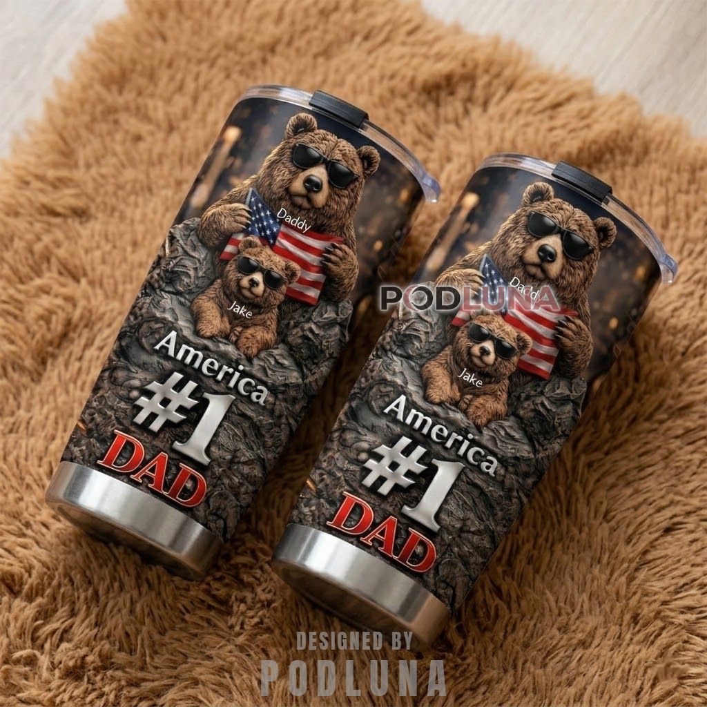 What separates a memorable gift from a forgettable one is whether it reflects the actual relationship. Podluna built this personalized bear dad tumbler so the names sit right where they belong, labeled on the daddy bear and the cub, turning a striking patriotic design into something that could only ever belong to one specific dad and his kid. The pride is built in. The personalization seals it.