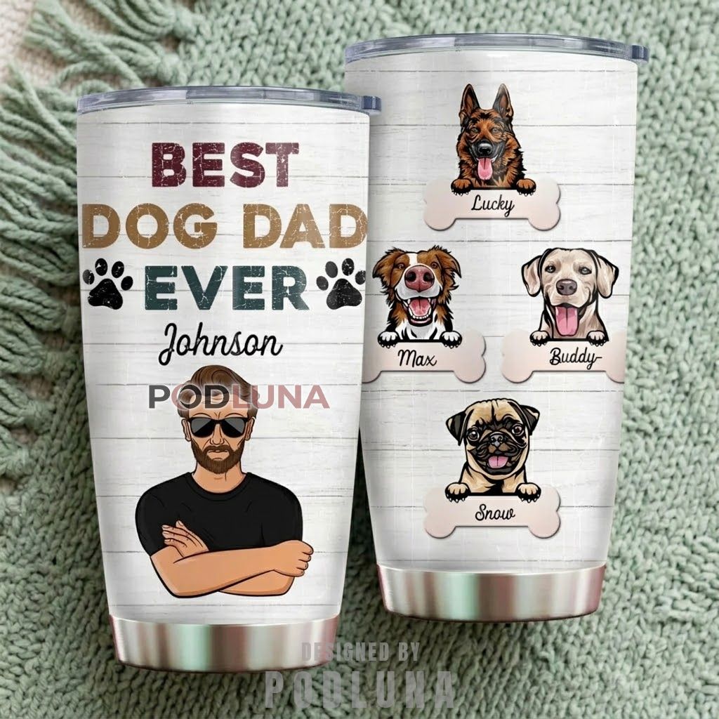 For the dog dad who schedules his mornings around the pack, who knows every quirk and every sleeping position of every dog in the house, a generic gift will never land the way a personalized one does. Podluna built this personalized dog dad tumbler so the breeds and names reflect his actual crew, making it the only cup in the cabinet that truly belongs to him.