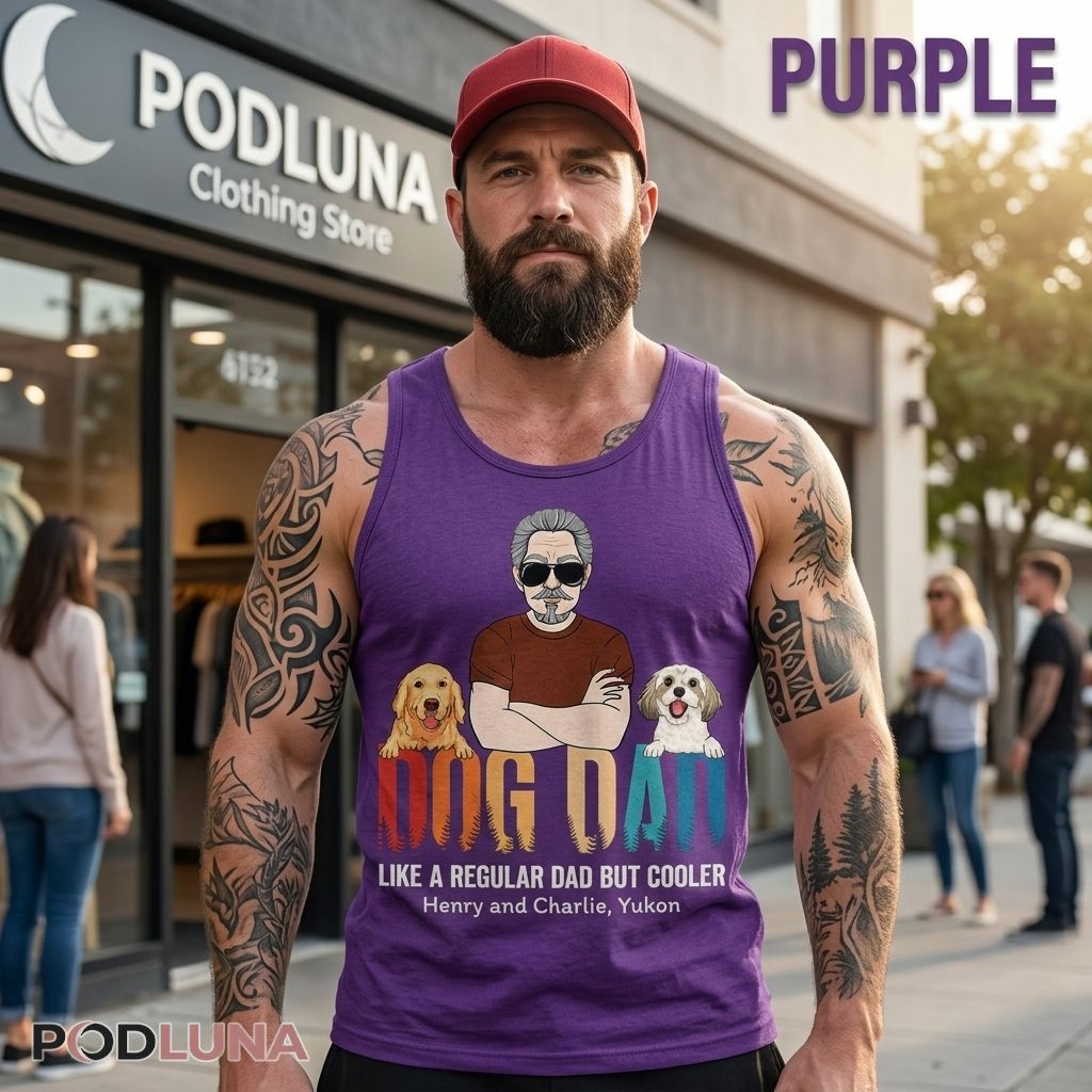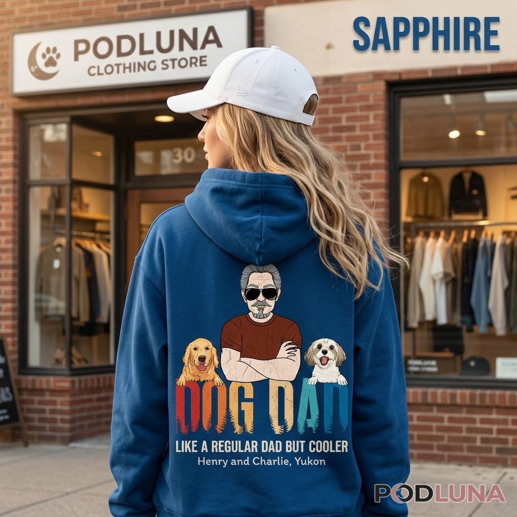 This personalized dog dad shirt is a cool dog owner shirt and funny pet owner gift designed for proud dog lovers who wear their canine companion identity with effortless confidence. For the dog owner whose dogs are not just pets but genuine daily partners whose names belong on everything he wears, this shirt makes the cooler-than-regular-dad distinction permanent and personal. The names printed below seal it as his shirt specifically. No other dog dad gift puts his exact crew into the design quite like this. Podluna designed this custom dog lover t-shirt for the Father’s Day, birthday, or any-occasion gift that tells the dog owner in your life exactly what category of dad he belongs to. Order it with his name and his dogs’ names and let the back of the shirt do the rest.