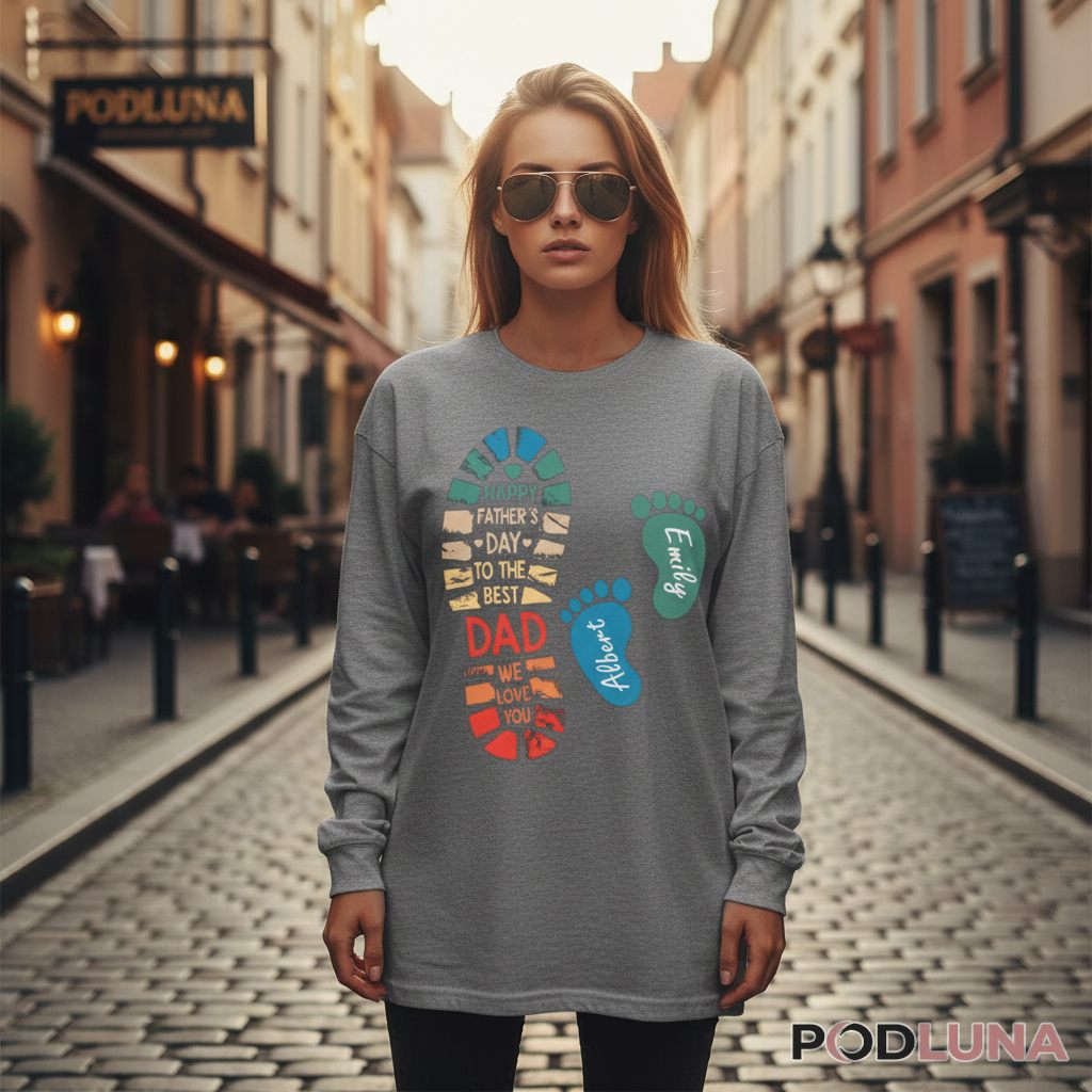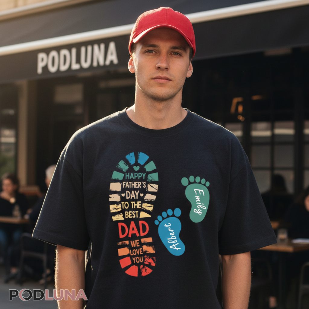 Generic Father’s Day gifts are fine, but something customized hits different. This design lets you add your kids’ actual names to those baby footprints, transforming a cute concept into a genuinely personal keepsake dad will treasure. The Personalized Fathers Day Best Dad Footprint Names Shirt from Podluna works whether you’re celebrating with one child or several—just add the names that matter most. It’s perfect for families who want their gift to reflect their unique story, not just check a box on the calendar. Dads who appreciate sentimental touches without the syrupy overload will genuinely enjoy wearing this one year-round.