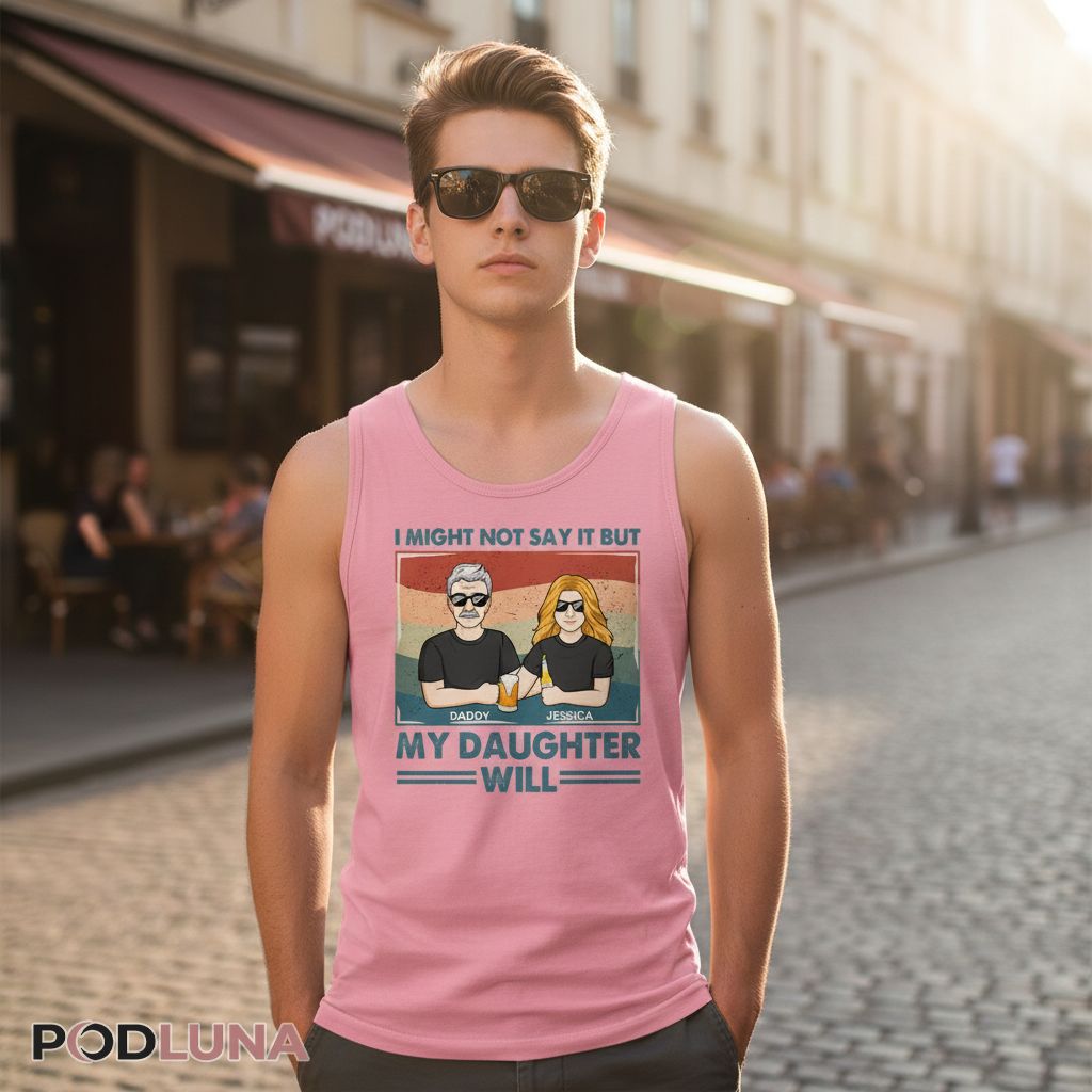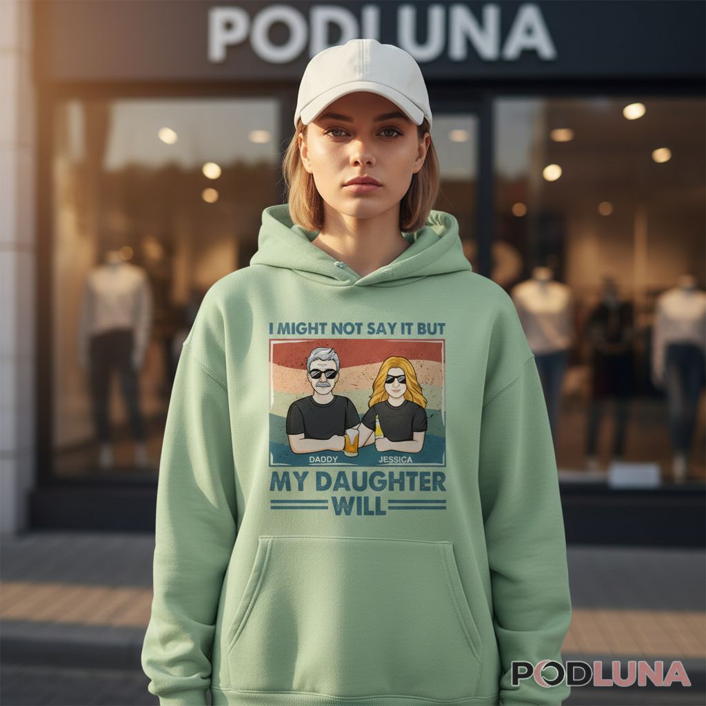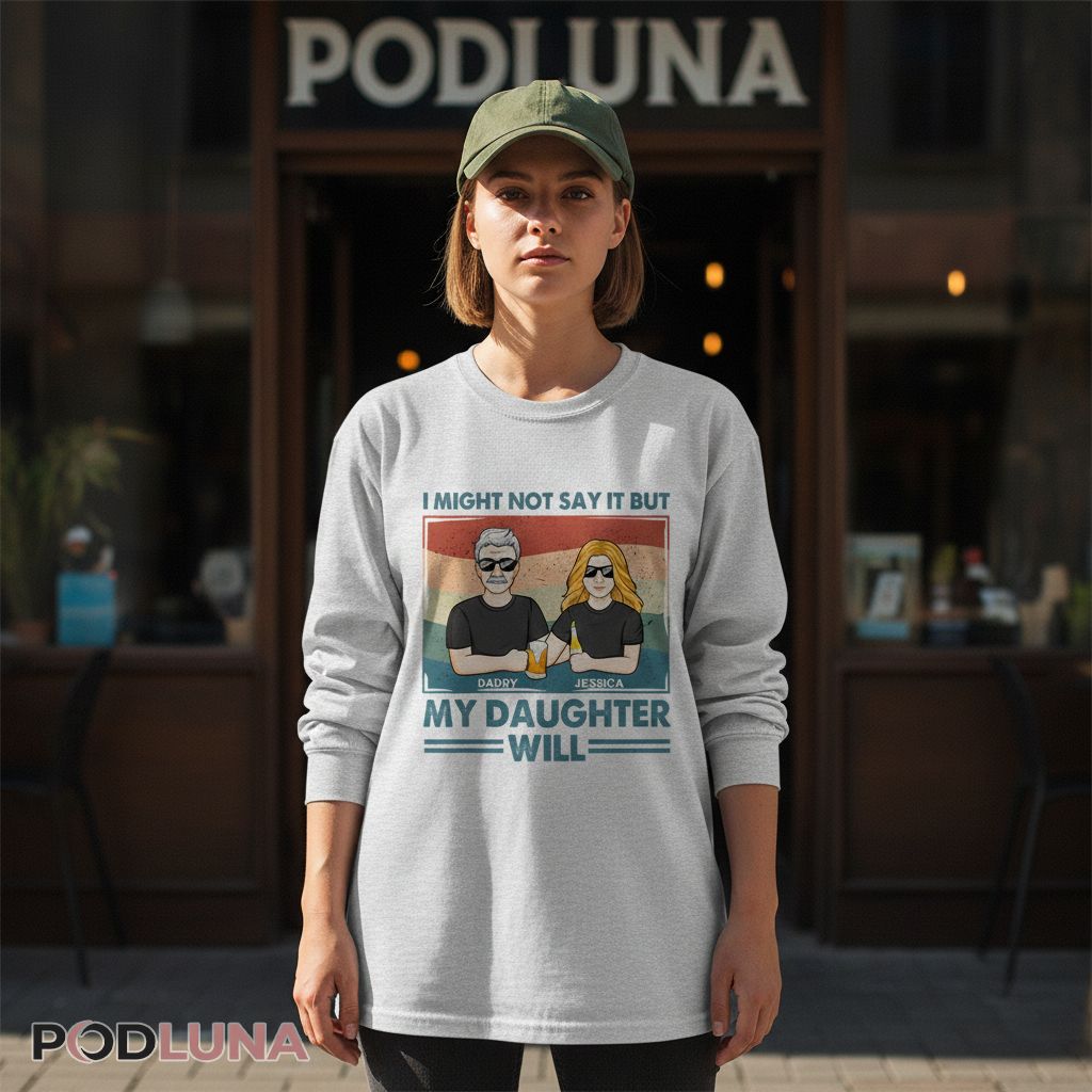 Dads aren’t always the best at expressing themselves—that’s where daughters come in. This design captures the beautiful dynamic of daughters who proudly brag about their fathers even when the dads themselves would never. Podluna’s Personalized I Might Not Say It But My Daughter Will Daddy Beer Shirt lets you customize both names, turning a relatable concept into a personal tribute. It’s perfect for father-daughter duos with strong bonds, dads who appreciate their daughter’s fierce loyalty, and families who communicate love through actions more than words. The beer bottle detail adds a casual, authentic touch that says this relationship is built on real moments—not performative perfection. Ideal for Father’s Day, birthdays, or just because she wants everyone to know her dad’s the best.