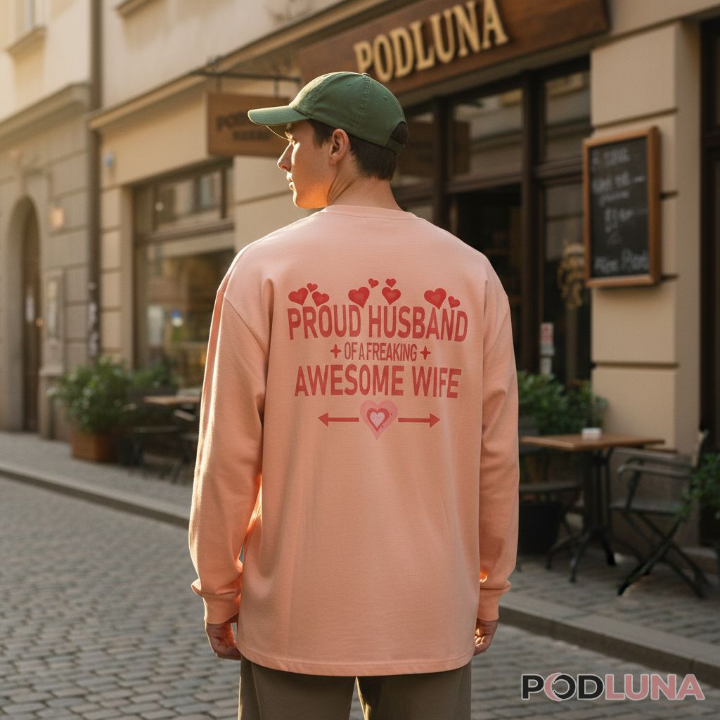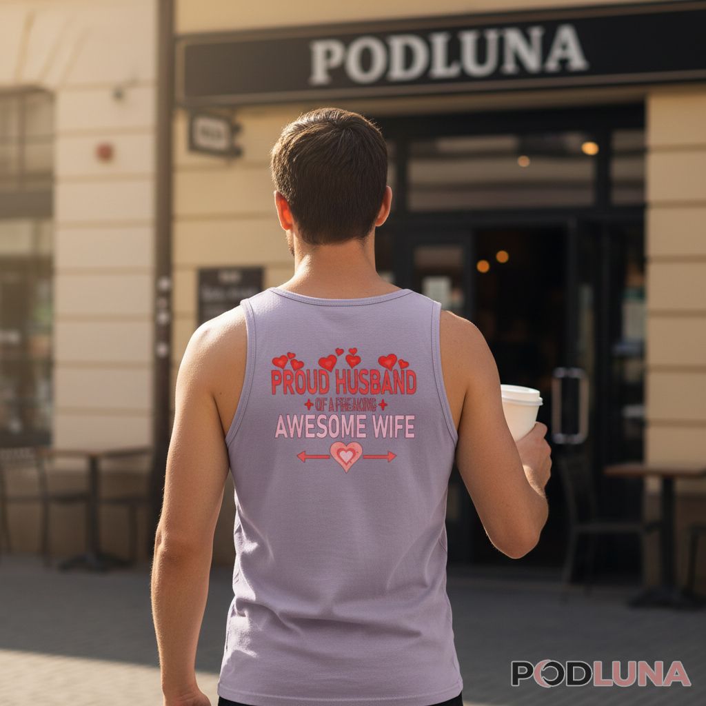 Podluna designs this for men who celebrate their wives openly, creating apparel that turns everyday wear into a compliment. Sizes S through 5XL come in comfortable unisex fits suitable for casual outings, family gatherings, or February celebrations where you want to make your appreciation visible. The heart and arrow graphics frame the message without cluttering the overall design, maintaining readability while adding romantic symbolism.