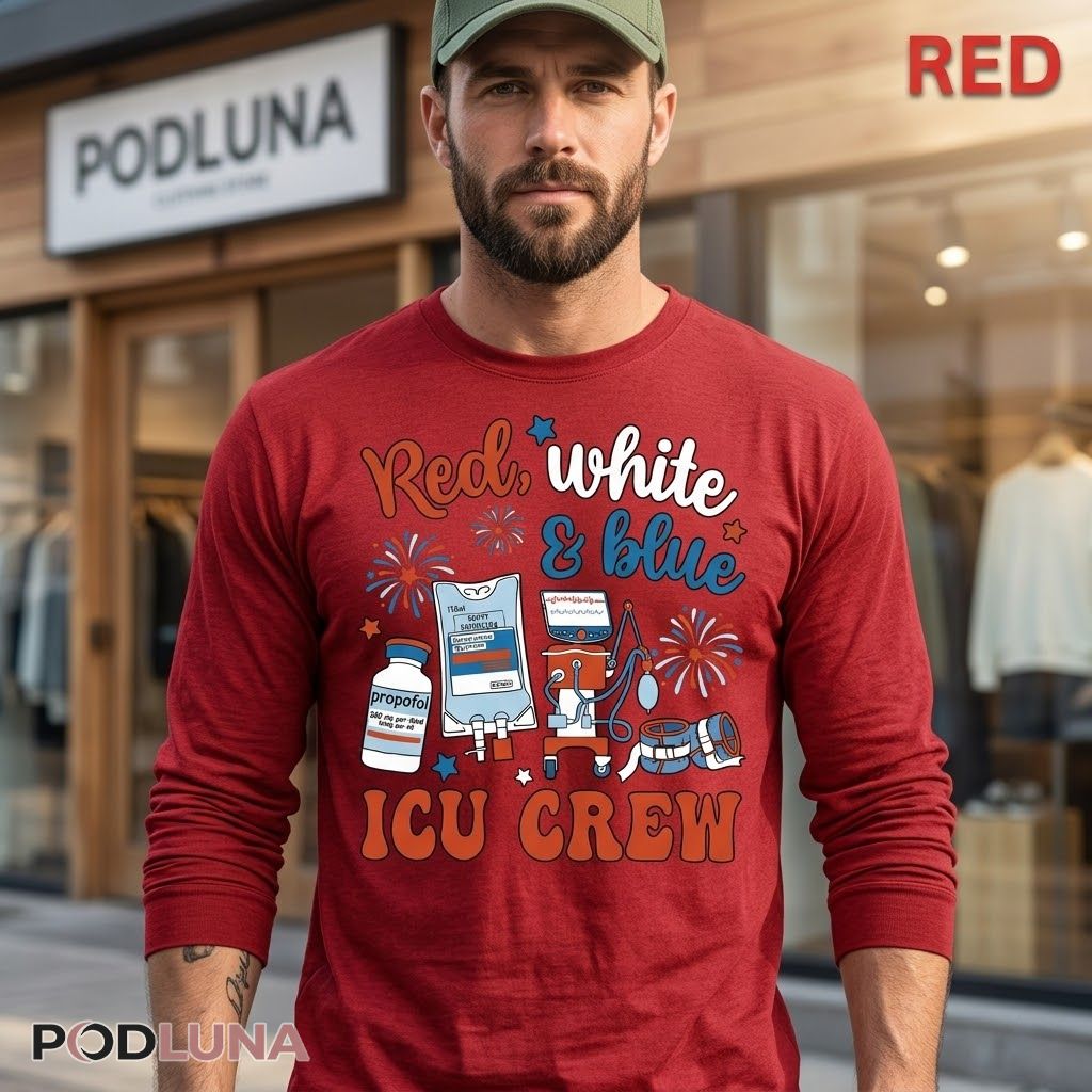For the nurse or ICU team member on your list who works every holiday and still finds a way to celebrate, the medical professional who appreciates humor that actually speaks their language, or anyone shopping for a meaningful patriotic healthcare gift, this red white and blue nurse shirt is the one that genuinely resonates.