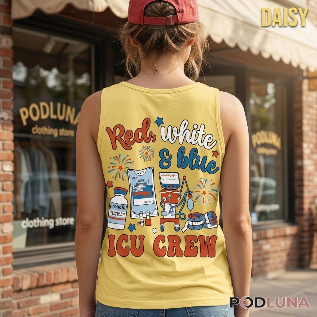 This ICU crew 4th of July shirt belongs at hospital unit gatherings, nurse appreciation events, healthcare team cookouts, and every shift handoff where someone deserves a genuine laugh before clocking in. It’s the kind of shirt that gets photographed and shared in the group chat before the wearer even makes it to the breakroom. Comfortable enough for a long shift, specific enough to mean something real.