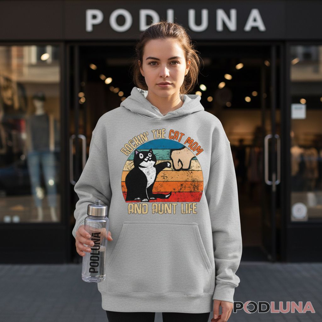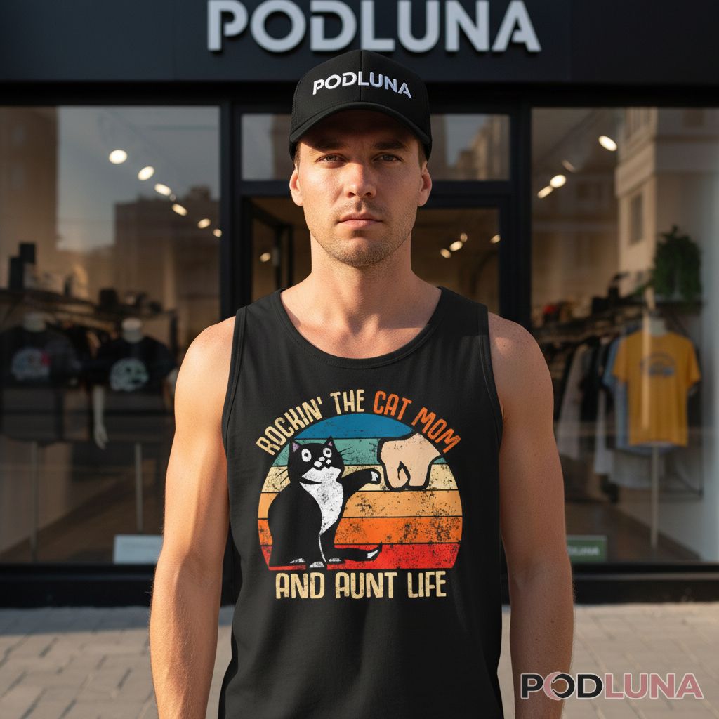 Some women excel at multiple roles simultaneously—spoiling nieces and nephews while also being completely devoted to their feline companions. This design celebrates that specific overlap with retro flair and a cat that clearly knows it runs the show. Podluna’s Rockin The Cat Mom and Aunt Life Retro Shirt is perfect for aunts who are equally passionate about their cats, Mother’s Day gifts from nieces and nephews who appreciate their cat-loving aunt, or casual wear for women who embrace both identities with equal enthusiasm. The vintage sunset aesthetic adds nostalgic charm while the confident cat illustration captures the attitude of someone who’s figured out the perfect life balance. Wear it to family gatherings, casual outings, or anywhere you want to represent the cat-mom-aunt community that understands unconditional love comes in many forms.