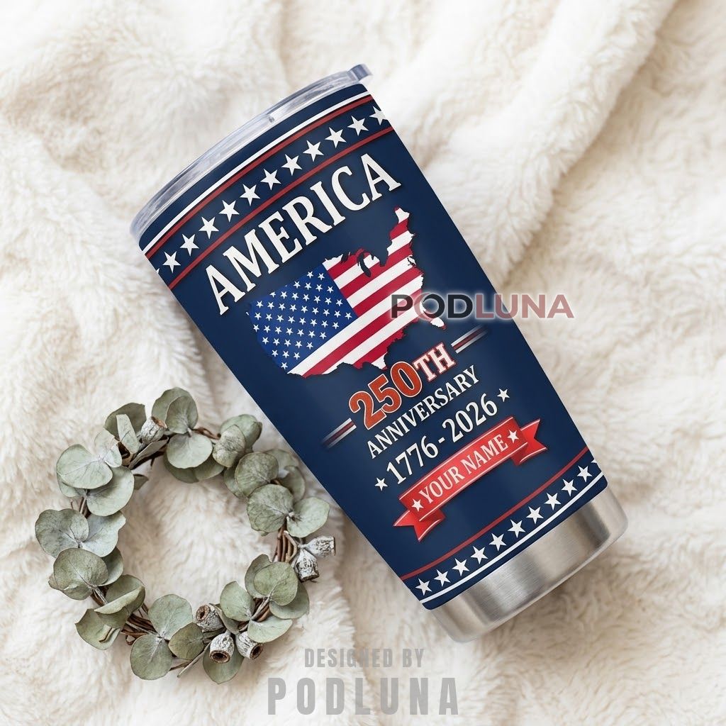 This America 250 personalized tumbler belongs centered on the kitchen counter as a daily reminder of the milestone year, at the Fourth of July cookout as the drink that earns the first compliment of the afternoon, and gift-wrapped for the history enthusiast or proud American who would genuinely appreciate seeing their name placed inside the shape of the nation itself. The insulated construction handles any temperature and any occasion with equal reliability.