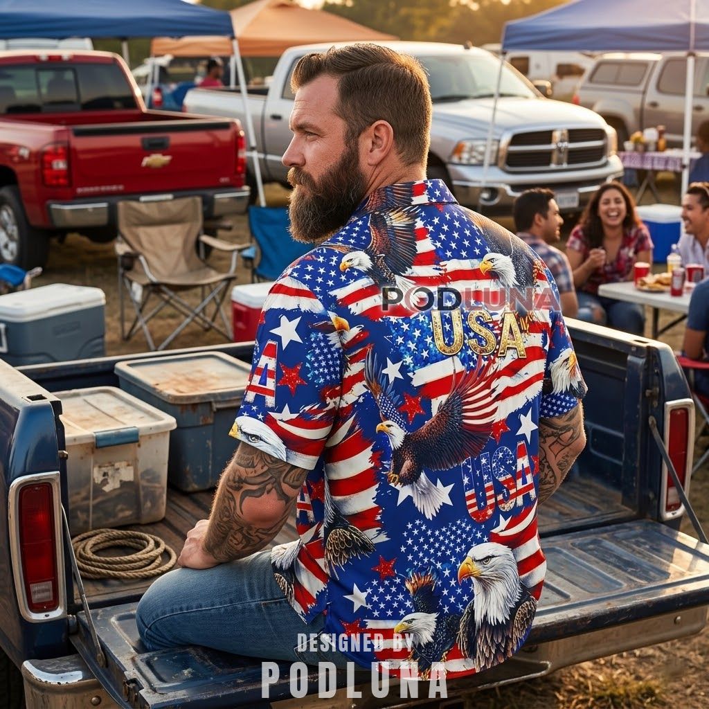 It works just as hard at the Fourth of July block party, the Memorial Day gathering, or any occasion where showing up halfway is not an option. The all-over eagle flag layout gives it energy in every direction, the kind of graphic that reads loud from ten feet away and holds up close.