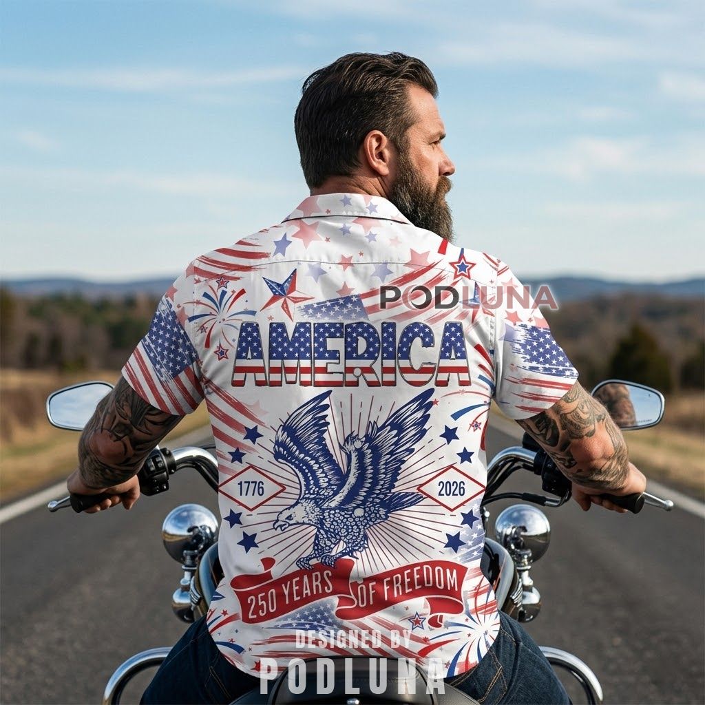 For the patriot who goes all-in every July, the rider who marks 1776 to 2026 as a milestone worth wearing, or anyone shopping for a bold 4th of July Hawaiian shirt that captures the full spirit of the anniversary with zero restraint, this is exactly that shirt.