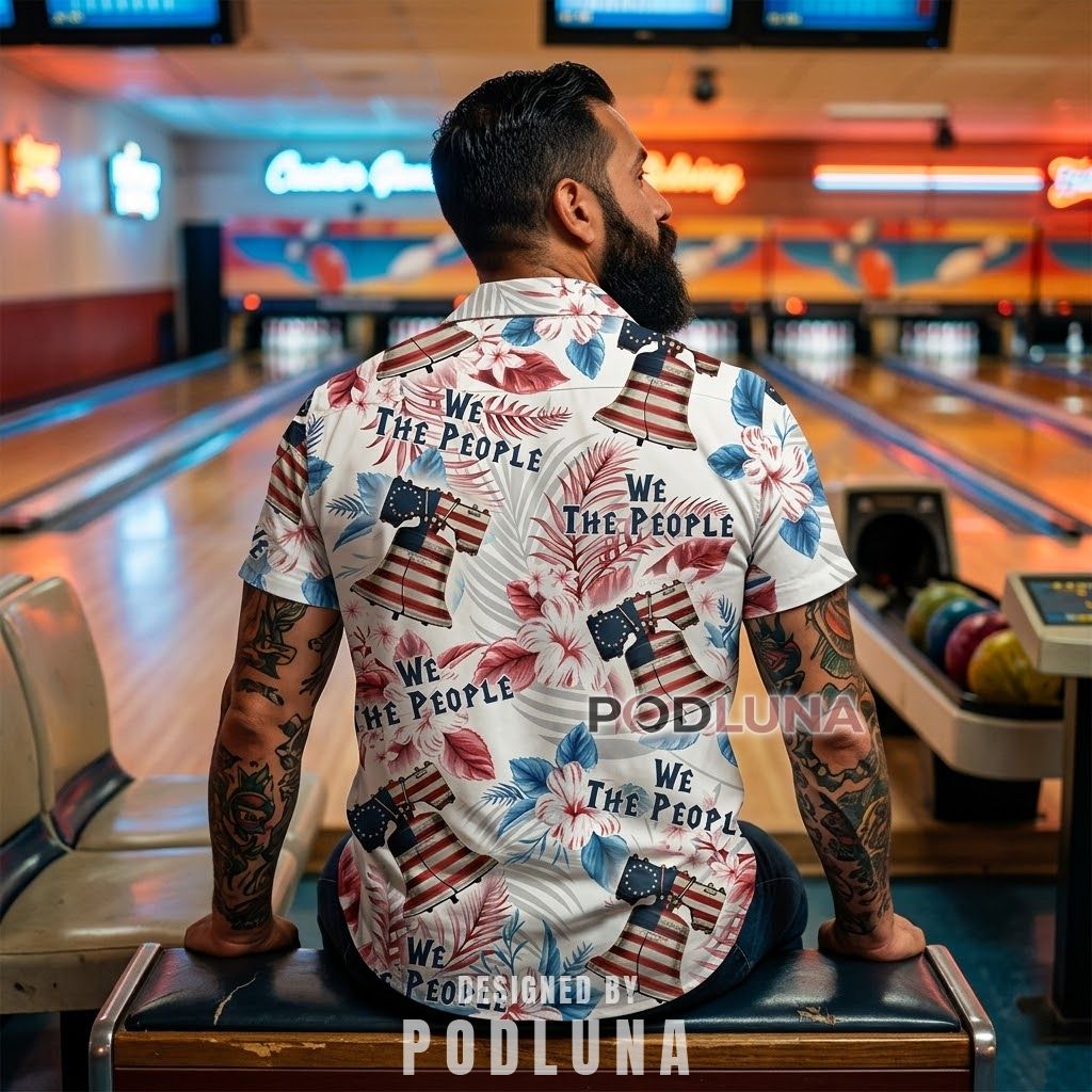 There’s something genuinely clever about putting the Liberty Bell in a Hawaiian shirt. It takes one of the most recognizable symbols of American independence and places it exactly where summer wants to be, surrounded by flowers, loose, relaxed, and completely at ease. The “We The People” text woven throughout adds a layer of meaning that rewards a closer look without demanding one. Podluna built this floral patriotic Hawaiian shirt for the person whose taste runs simultaneously toward history and a good rooftop party.