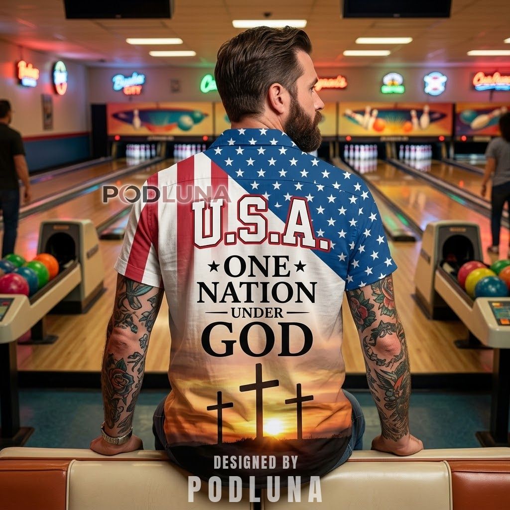 Some people compartmentalize their beliefs and their patriotism. This shirt doesn’t. The crosses and the stars and stripes share the same space without apology, the way they do in the lives of the people this shirt was built for. The golden sunrise behind the crosses gives the whole composition a weight that goes beyond decoration and into something that actually means what it says. Podluna designed this One Nation Under God Hawaiian shirt for the person whose faith is as much a part of July 4th as the fireworks.