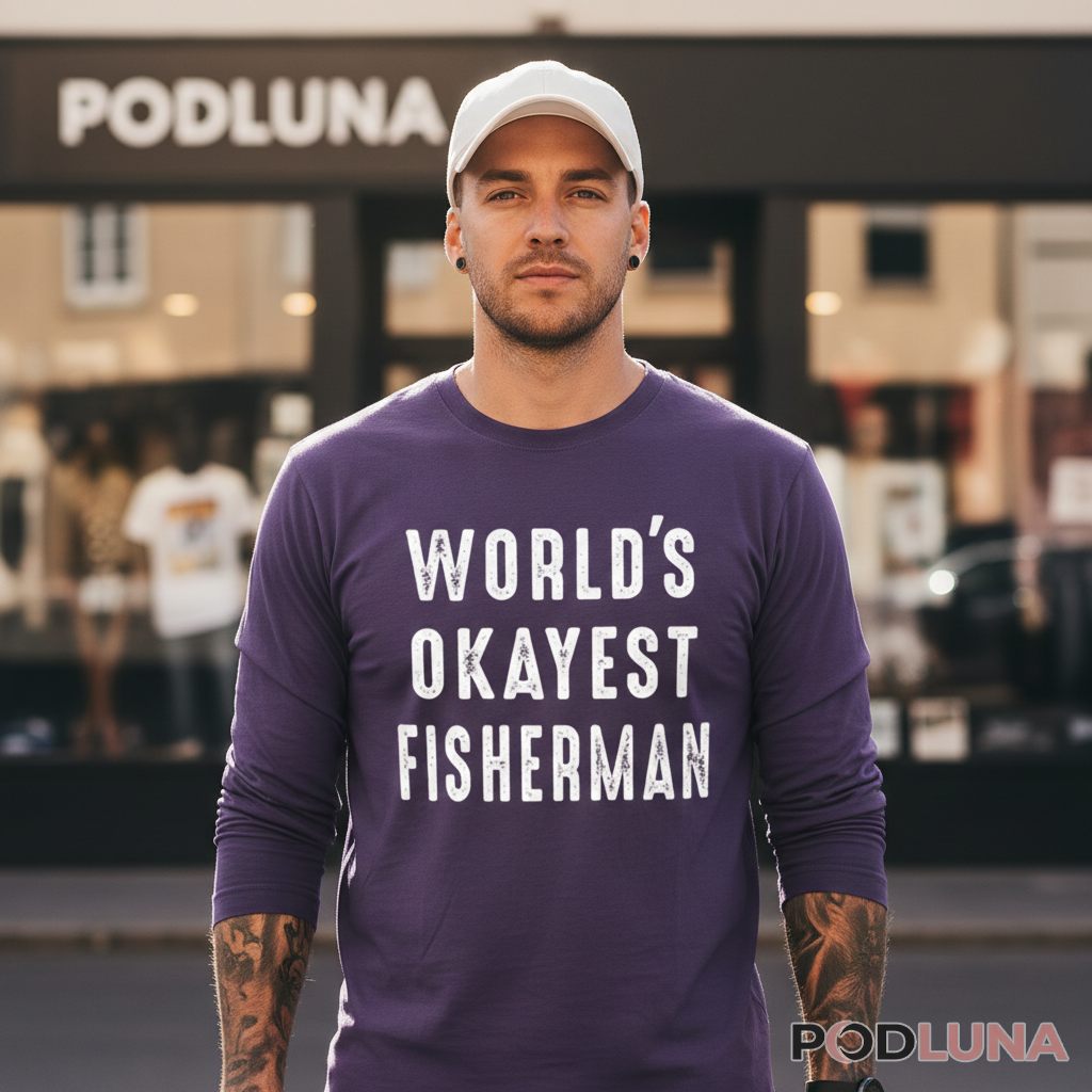 Not winning tournaments, not setting records, not impressing anyone with technique—just catching enough fish to justify the hobby while enjoying beer, sunshine, and the excuse to escape responsibilities for a few hours. This funny fishing shirt captures that self-aware mediocrity with honest messaging celebrating fishing dads who fish for fun rather than glory. Perfect for fishermen with realistic self-assessment or families gifting fathers who appreciate self-deprecating humor about their fishing abilities, Podluna’s Worlds Okayest Fisherman Funny Sarcastic Hobby Shirt delivers laugh-out-loud recognition of average angling. The simple design lets the joke speak for itself while the “okayest” label becomes a badge of honor for those who understand fishing is about enjoyment, not excellence. Fishermen wear this to tackle shops where fellow anglers appreciate the honesty, fishing trips where it sets appropriate expectations for catch success, or family gatherings where it preemptively explains why the fish stories won’t be impressive but the day on the water was still perfect.